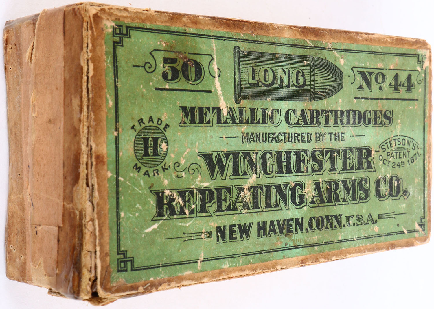 | Winchester, Metallic Cartridges, .44 Long R.F., Full, 2pc. Buff ...