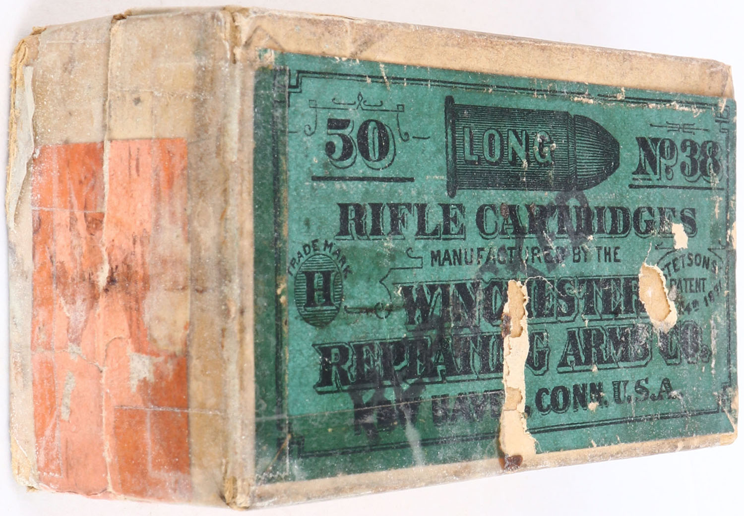 | Winchester .38 Long R.F., 2pc, Full, buff box with orange/green ...