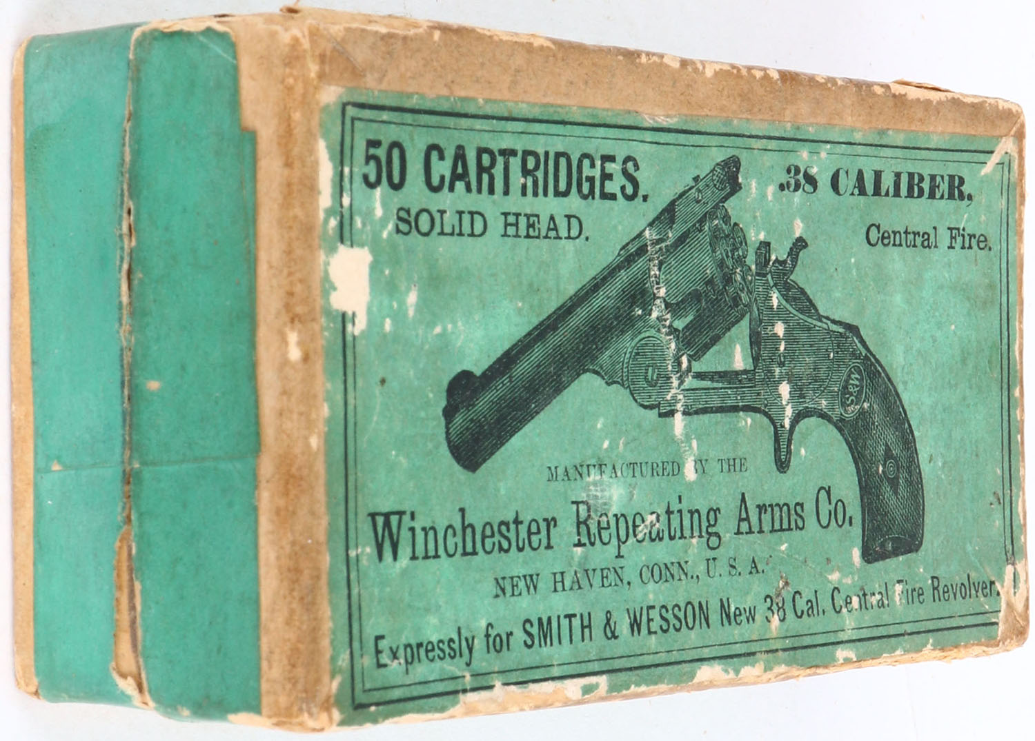 | Winchester, .38 Smith & Wesson, Full, 2pc. Buff box with green ...