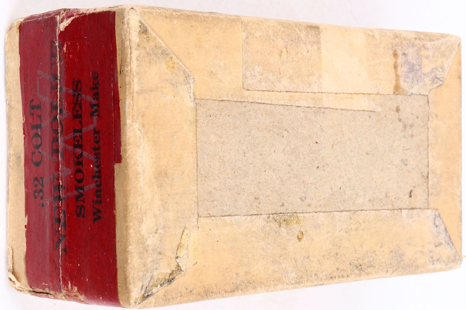 Winchester, .32 Colt New Police, Smokeless Powder, 98 Grain Lead Bullets, Full, 2pc. Buff box with red top & side sealing labels, box is solid with excellent color, some age soiling & shelf wear, edge & corner wear, labels are intact, ammo is excellent. Grade: Excellent - Value: 30 to 90