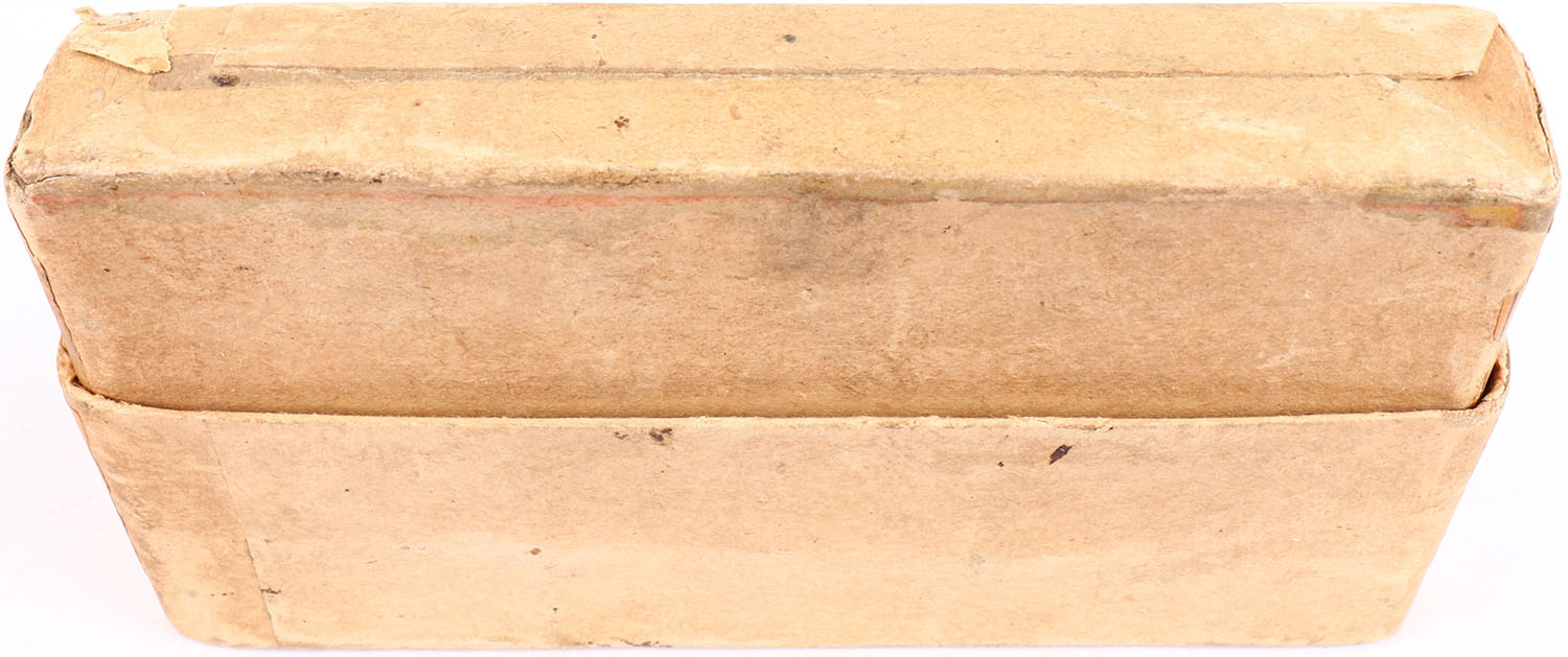 Winchester, .32-40 Caliber, Smokeless Powder, 165 Gr. Metal Patched Soft Point Bullets, FULL & SEALED, 2pc. Buff box with orange labels, box is solid with very good color, age soiling, color fading to labels, some staining to all sides, minor shelf wear, very minor edge & corner wear, labels are intact. Grade: Excellent - Value: 80 to 240