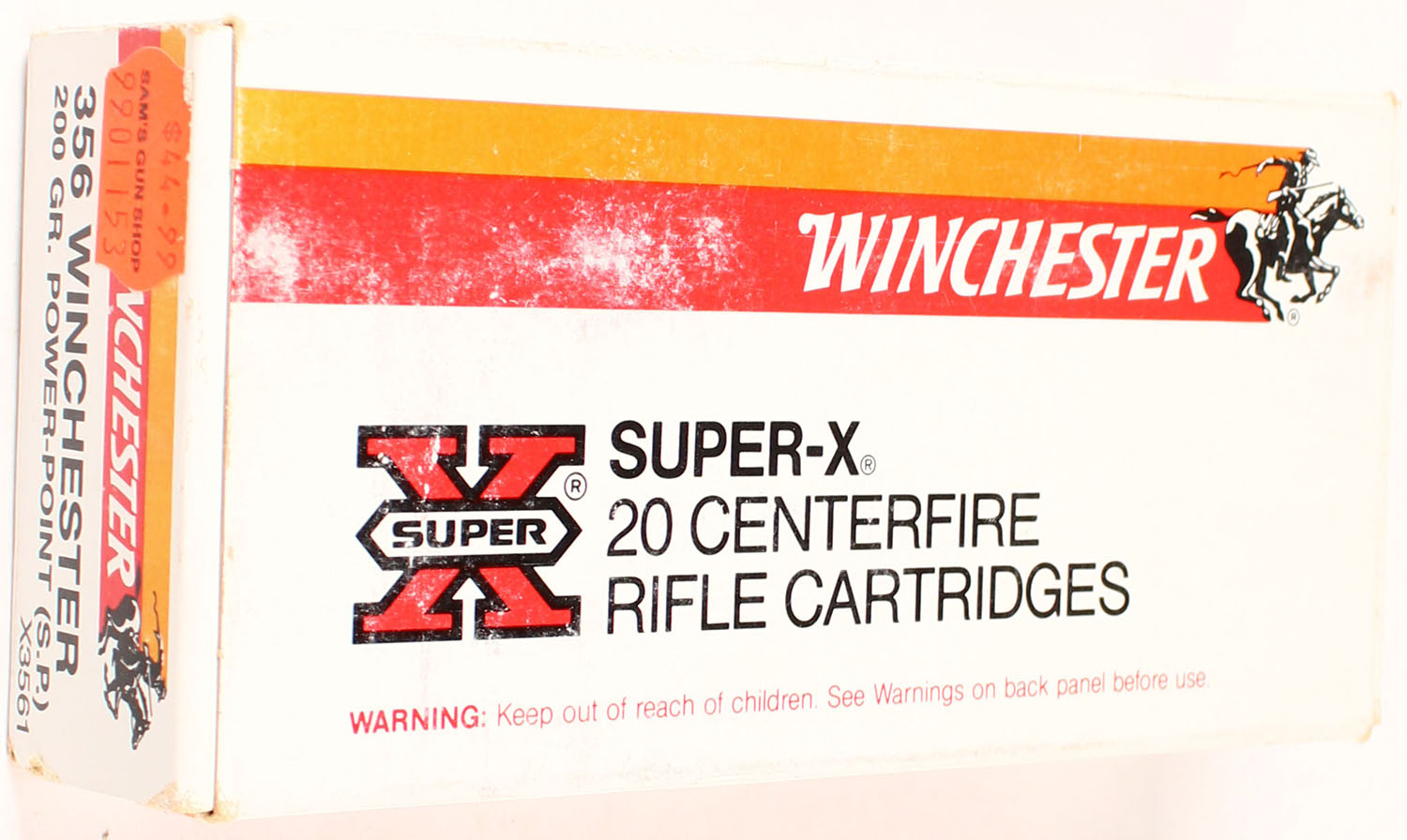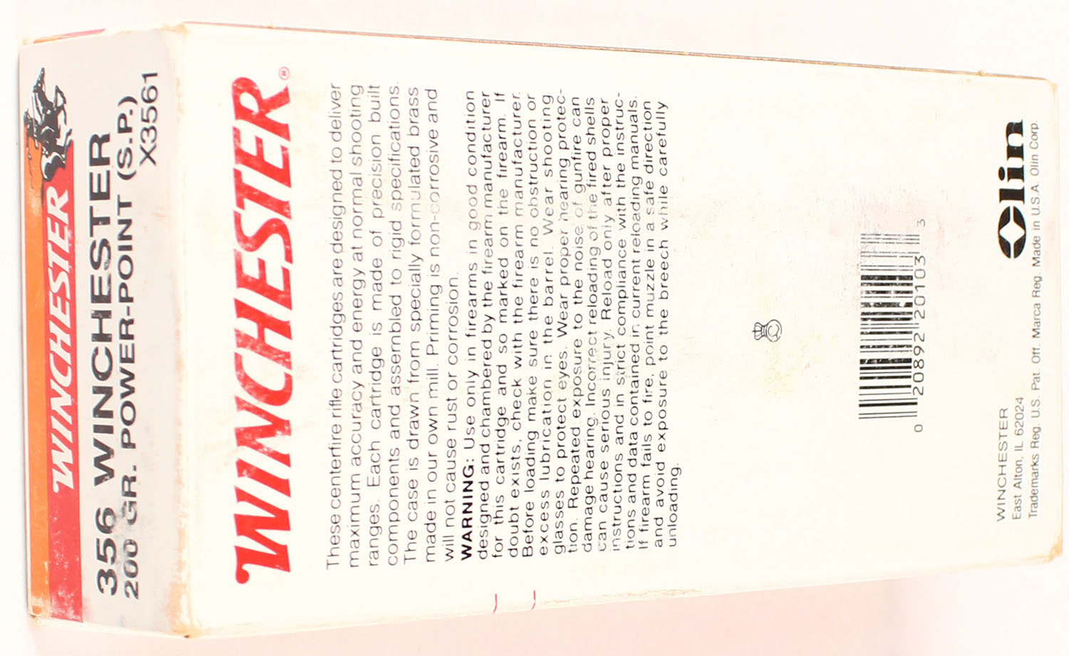 Winchester, Super-X, 356 Winchester, 200 Grain Power-point SP, Full, 1pc., Multi-colored box, box is solid with great color, Ammo is excellent. Grade: Excellent ++ - Value: 20 to 80