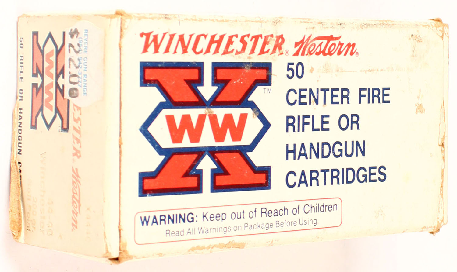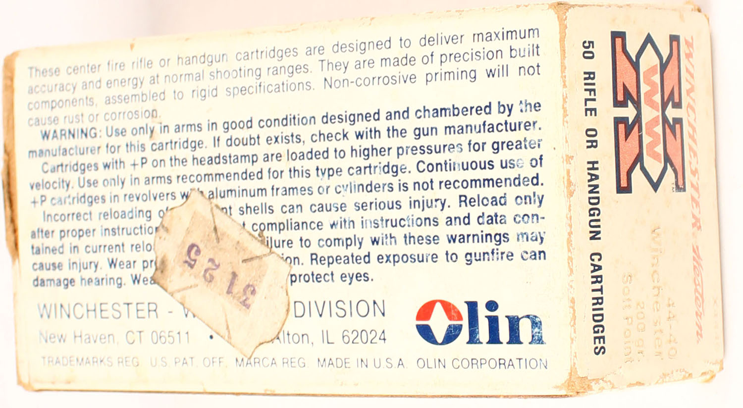 Winchester-Western, Super-X, 44-40 Winchester, 200 Grain SP, Full, 1pc., Multi-colored box, box is solid with very nice color, Ammo is excellent. Grade: Excellent ++ - Value: 20 to 80
