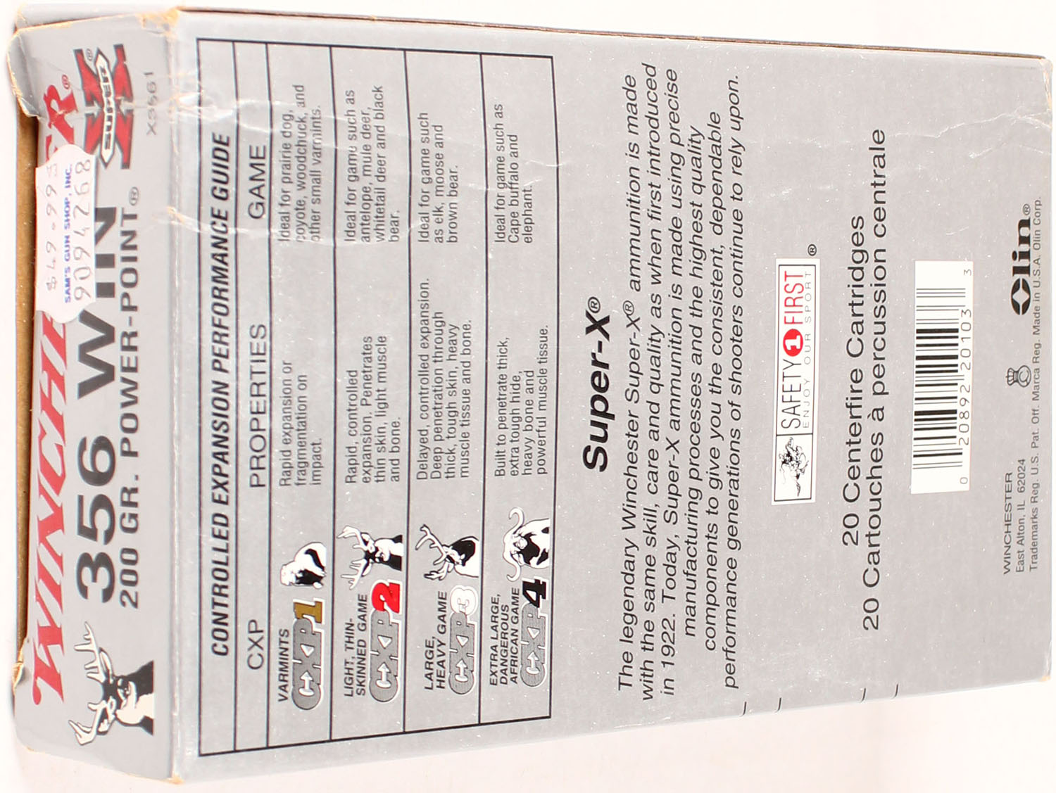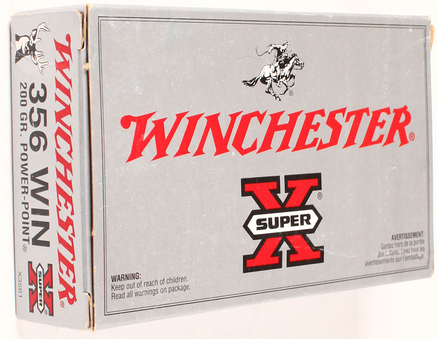 Winchester, Super-X, 356 Win, 200 Grain Power-Point, Full, 1pc., Multi-colored box, box is solid with great color, Ammo is excellent. Grade: Excellent + - Value: 20 to 80