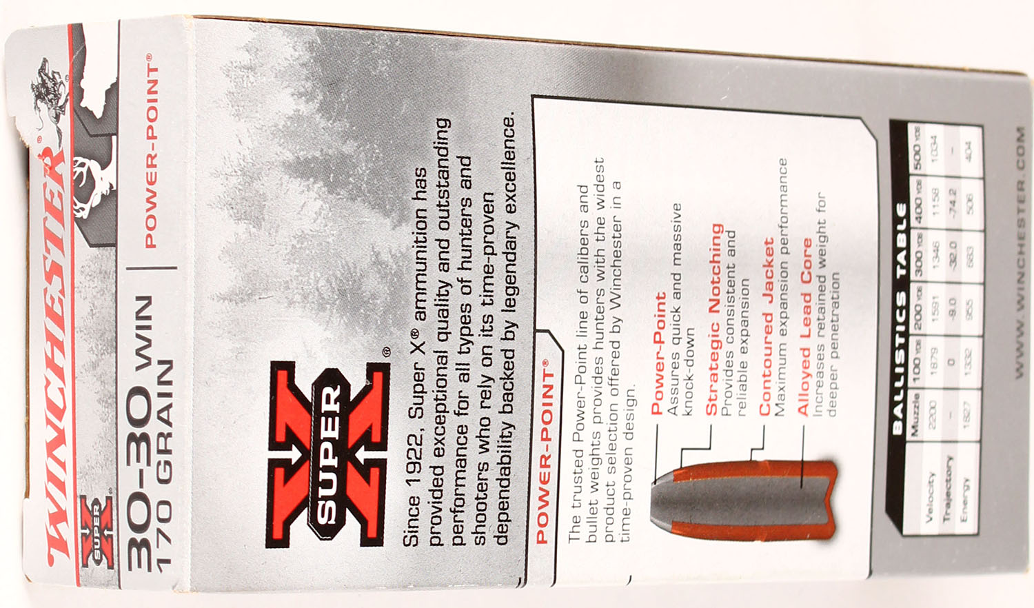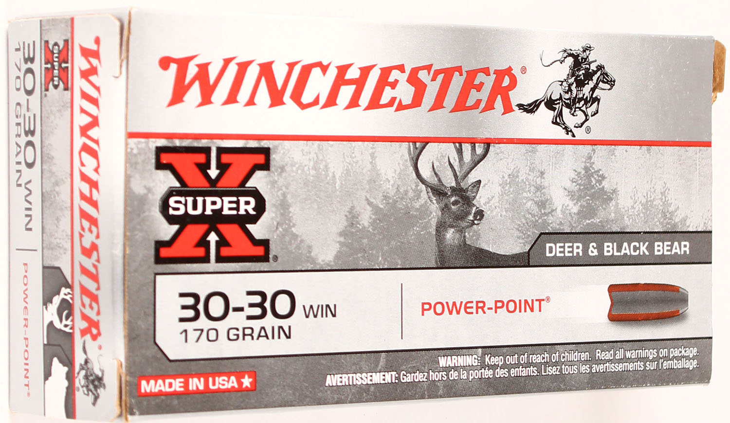 Winchester, Super-X, 30-30 Win, 170 Grain Power-Point, Full, 1pc., Multi-colored box, box is solid with great color, Ammo is excellent. Grade: Excellent + - Value: 20 to 80