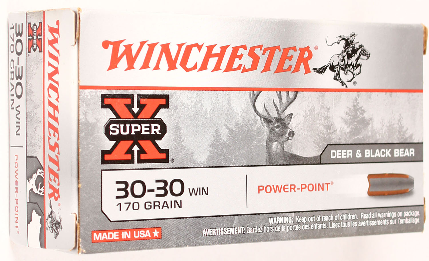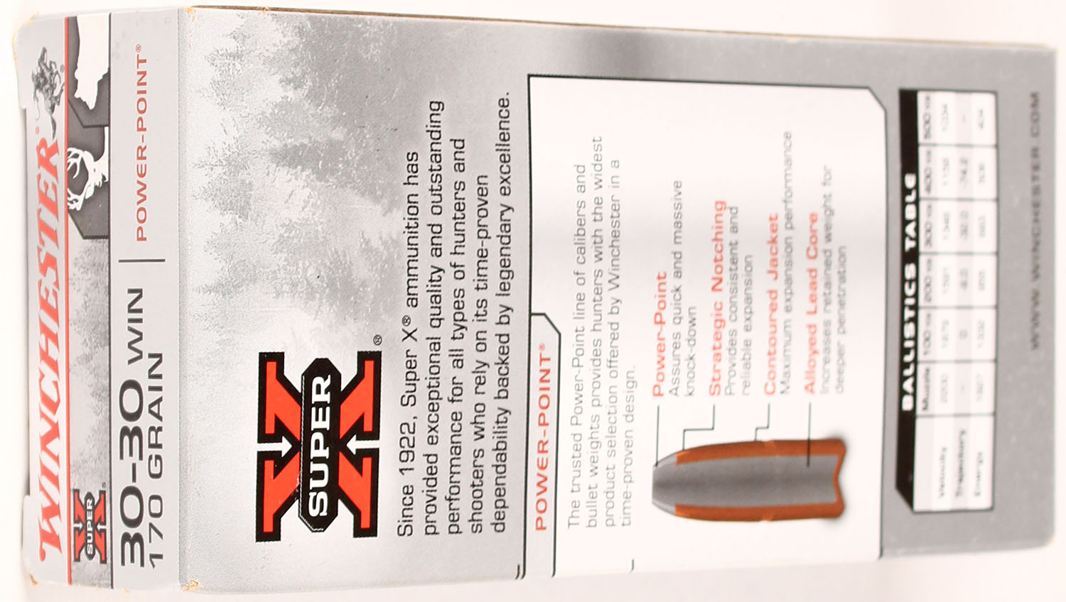 Winchester, Super-X, 30-30 Win, 170 Grain Power-Point, Full, 1pc., Multi-colored box, box is solid with great color, Ammo is excellent. Grade: Excellent + - Value: 20 to 80