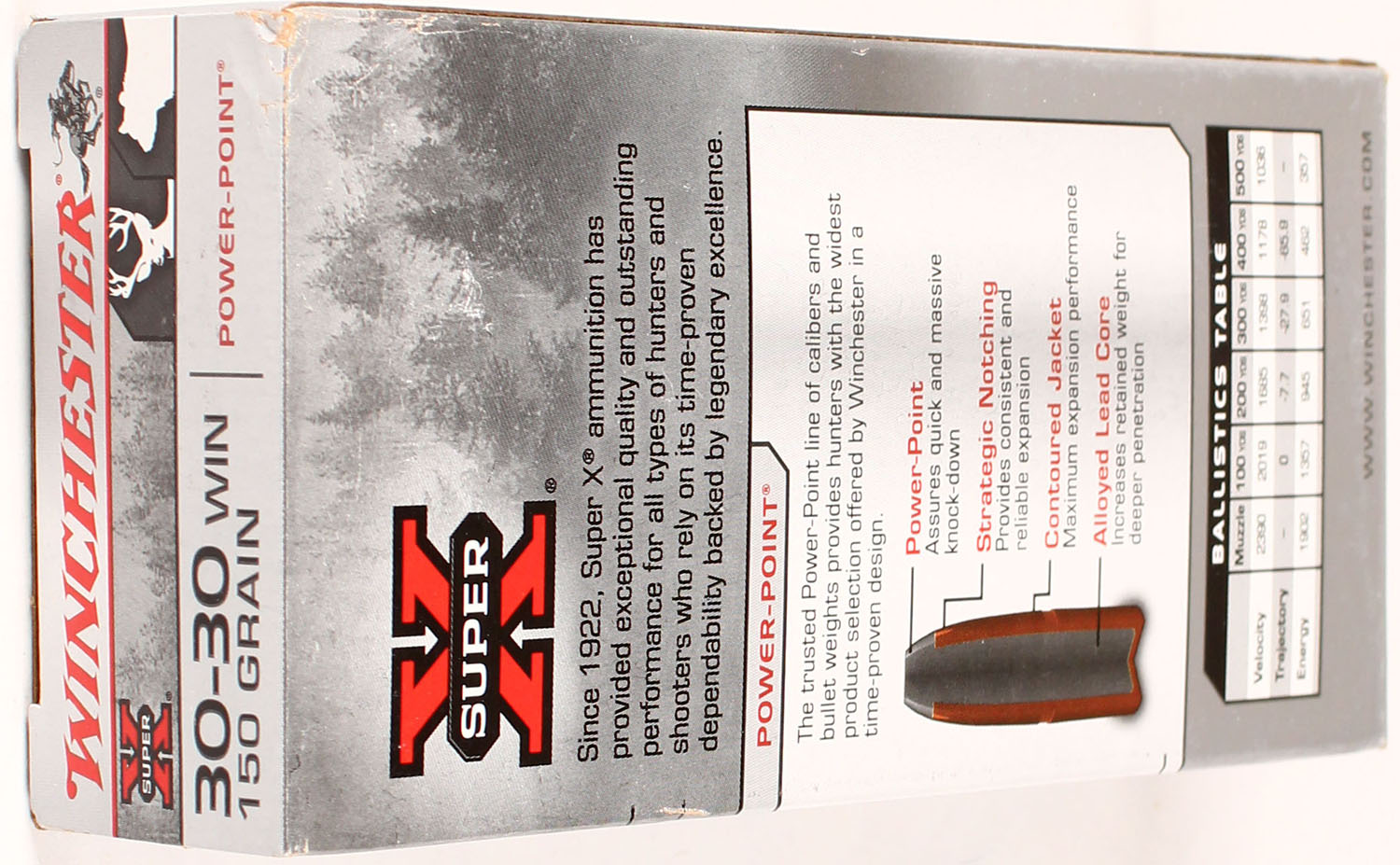 Winchester, Super-X, 30-30 Win, 150 Grain Power-Point, Full, 1pc., Multi-colored box, box is solid with great color, Ammo is excellent. Grade: Excellent + - Value: 20 to 80