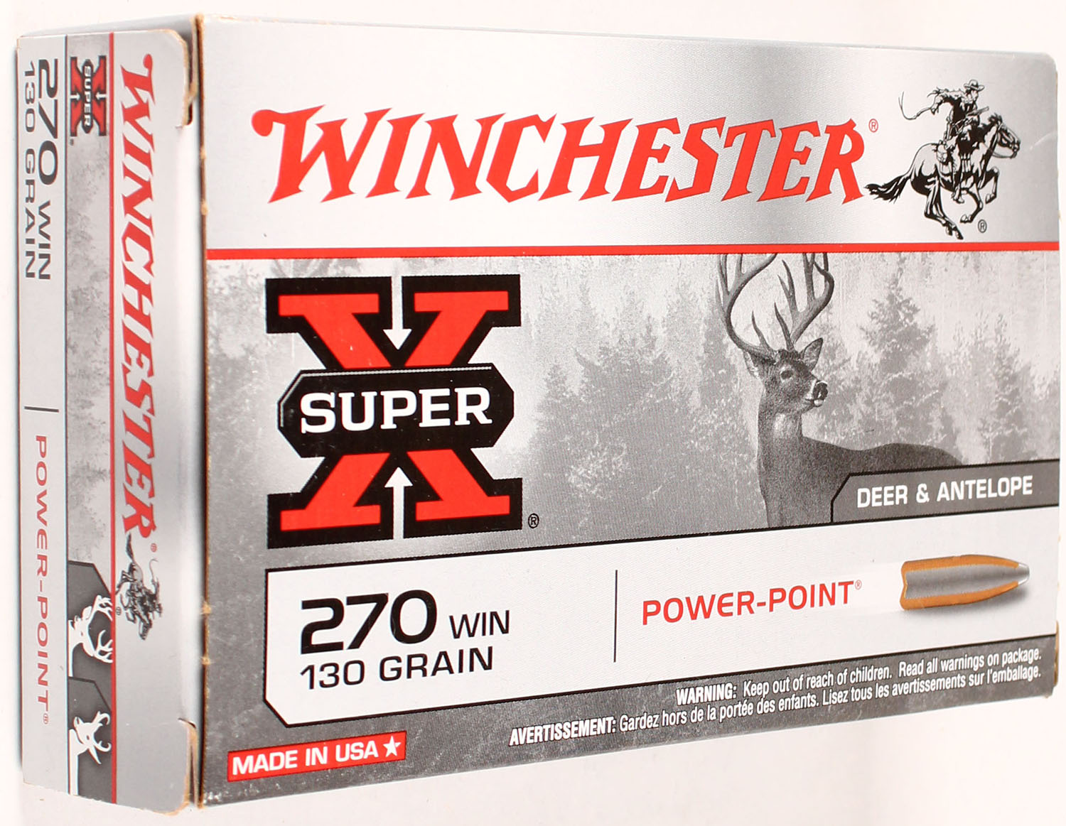 Winchester, Super-X, 270 Win, 130 Grain Power-Point, Full, 1pc., Multi-colored box, box is solid with great color, Ammo is excellent. Grade: Excellent + - Value: 20 to 80