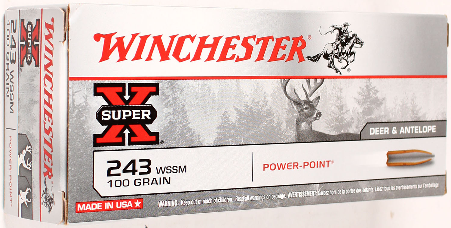 | Winchester, Super-X, 243 WSSM, 100 Grain Power-Point, Full, 1pc....