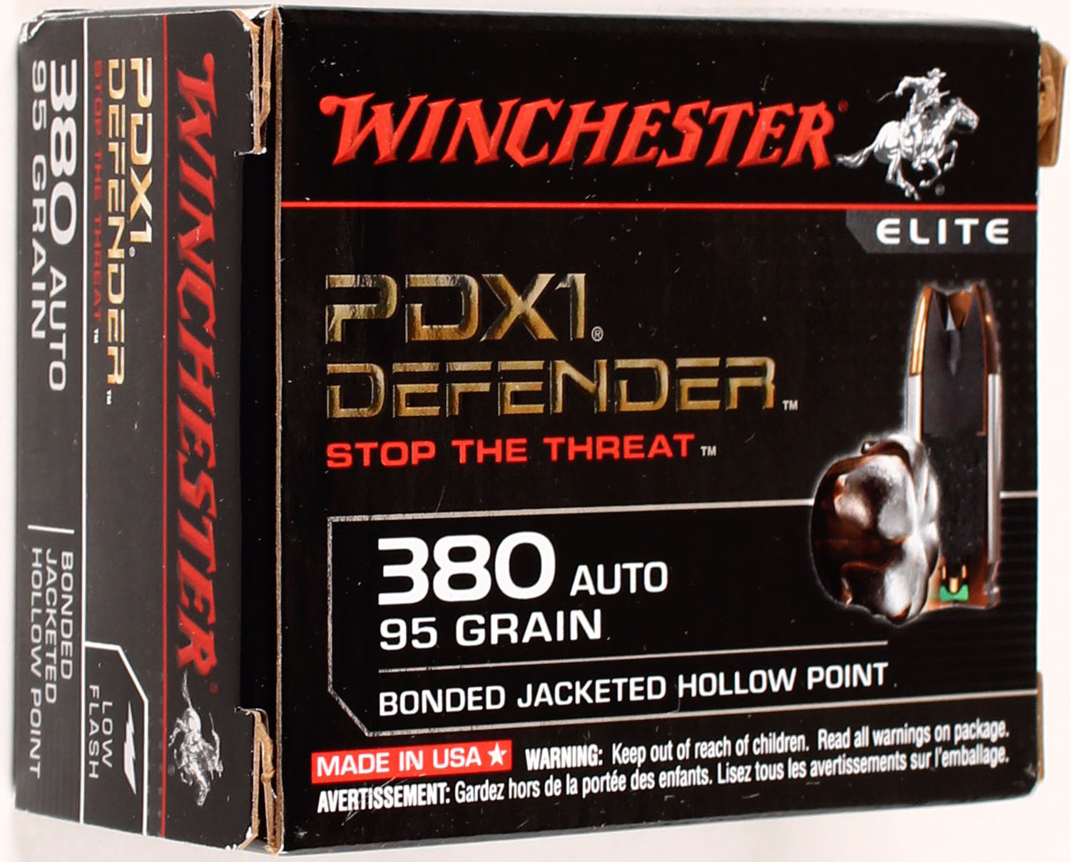 Winchester Elite, PDX1 Defender, 380 Auto, 95 Grain Bonded Jacketed HP, Full, 1pc., Multi-colored box, box is solid with great color, Ammo is excellent. Grade: Excellent + - Value: 20 to 80