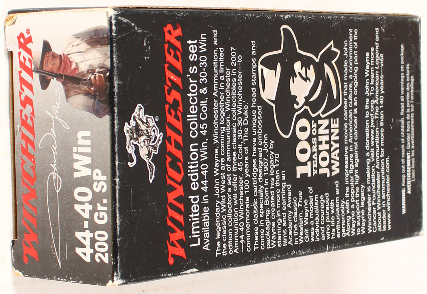 Winchester, John Wayne, 44-40 Win, 200 Grain SP, Full, 1pc., Multi-colored box, box is solid but has light shelf wear with great color, Ammo is excellent. Grade: Excellent + - Value: 20 to 100