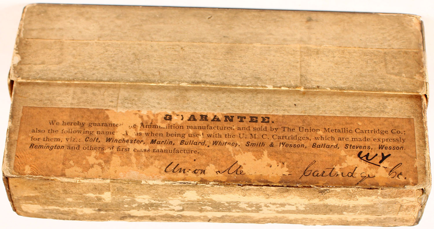 UMC, .40 cal. 70 grains, Creedmoor, FULL, 2pc. Buff box with yellow and black label, box has age soiling and scuffing, ammo is very good. Grade: Very Good - Value: 100 to 500