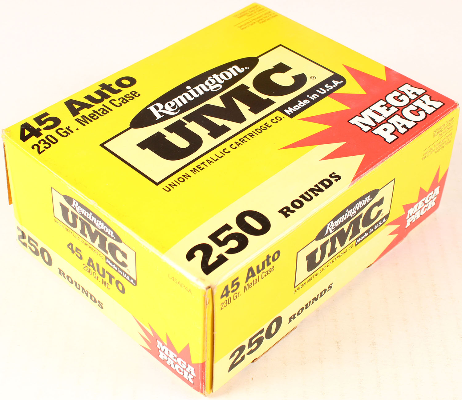 Full Case of UMC, 45 Auto, 1pc., Full, 250 rds., 230 Gr Metal Case, boxes & ammo are mint. Grade: MINT - Value: 50 to 250