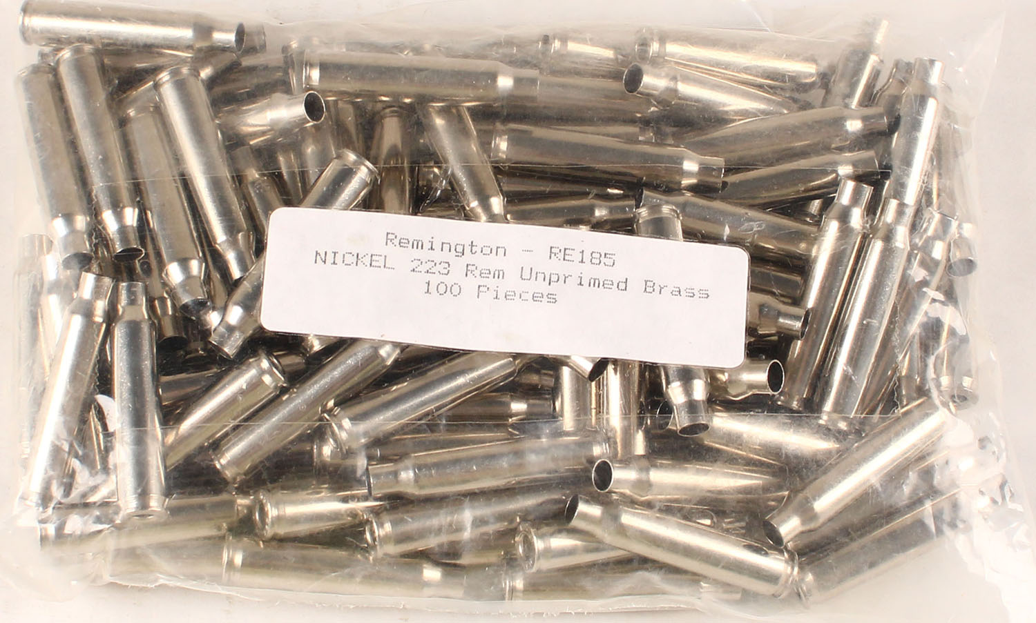 Lot of 100 nickeled unprimed cases marked H/S: REM 223. Grade: Excellent - Value: 10 to 60