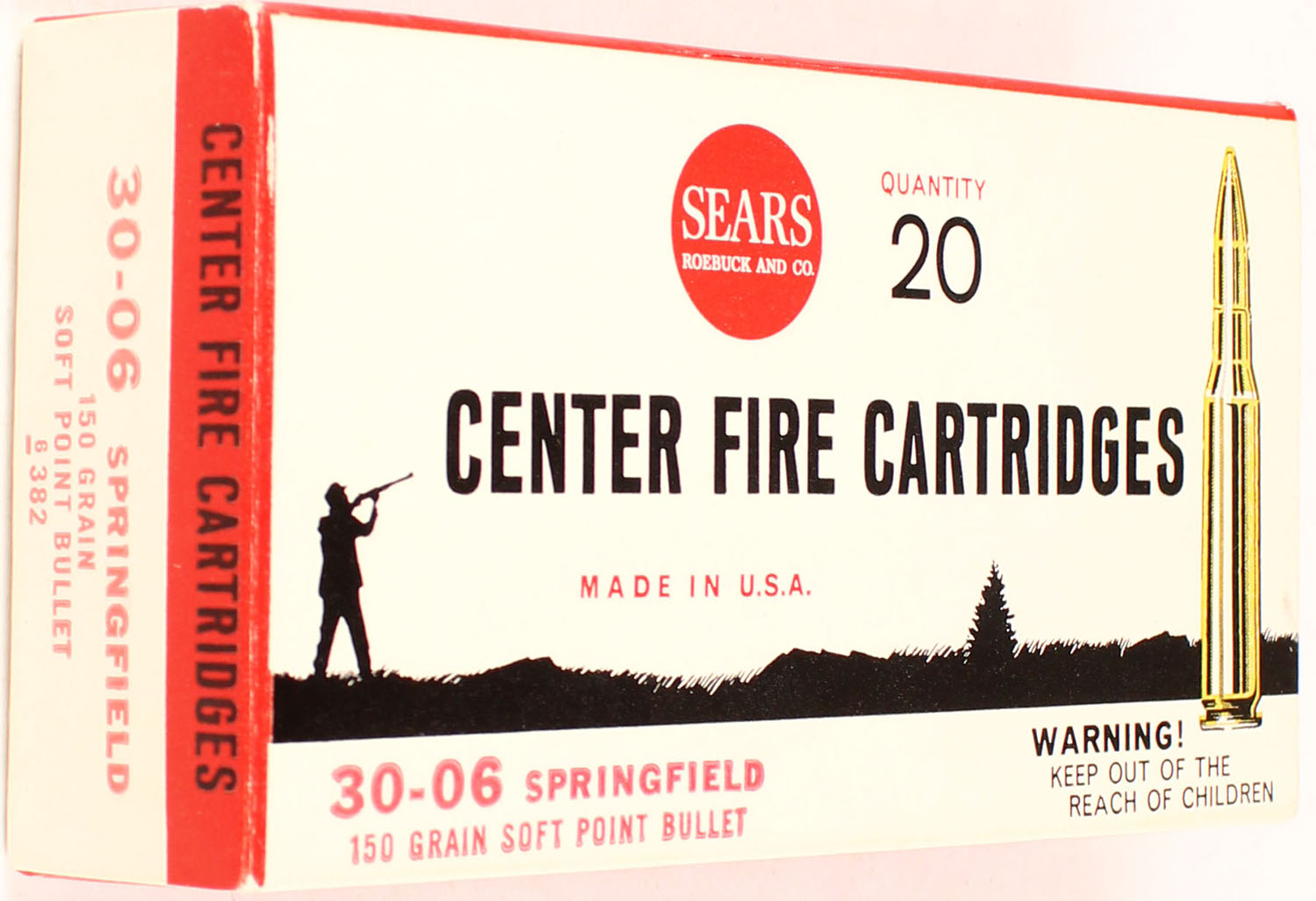 Sears, 30-06 Springfield, 1pc., Full, 150 Grain Soft Point Bullet, Index 6382, multi-color box, box is solid, ammo is excellent. Grade: Excellent ++ - Value: 10 to 60