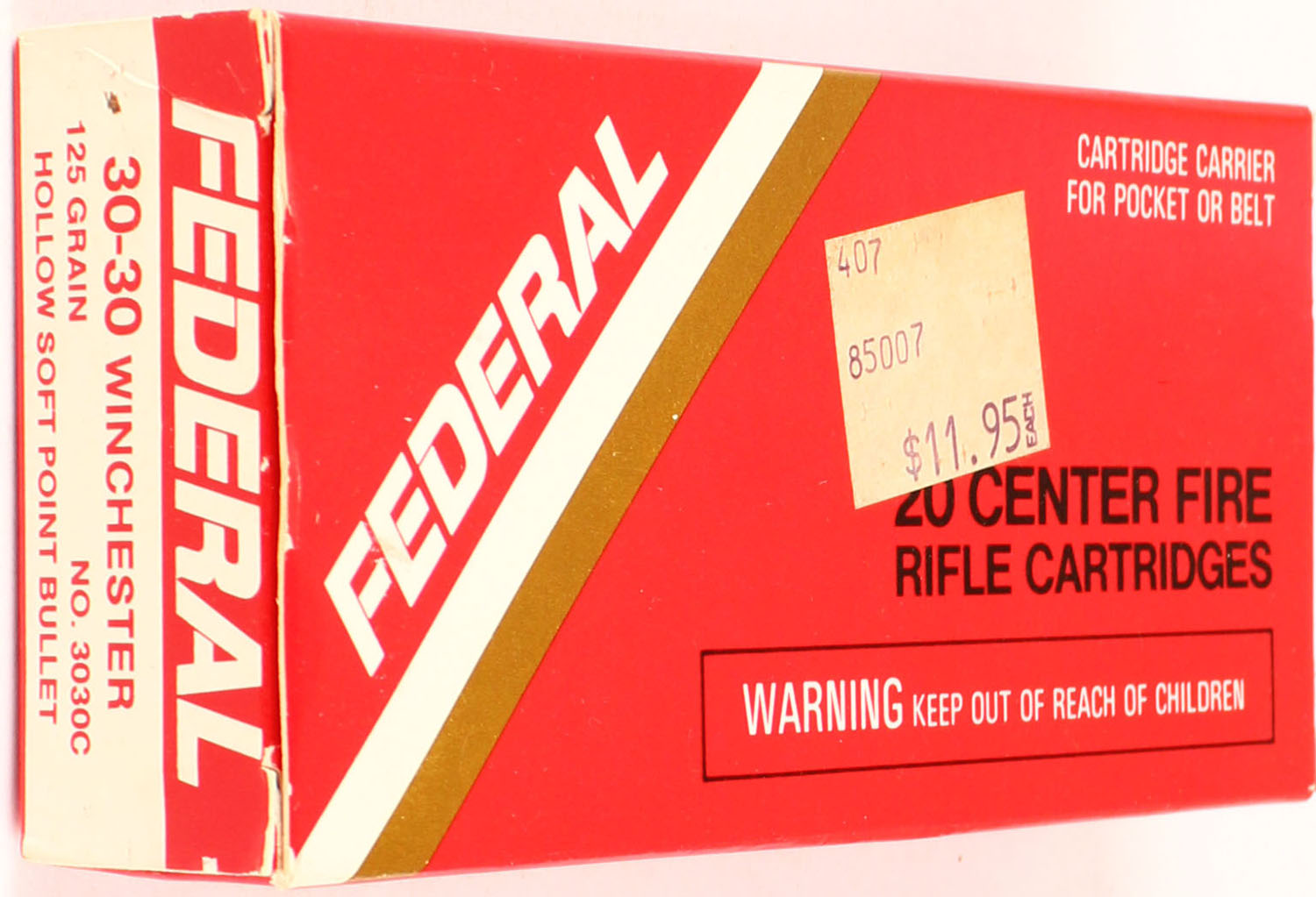 Federal, 30-30 Winchester, 1pc., Full, 125 Gr. Hollow Point Bullet, No. 3030C, box is solid, ammo is Mint. Grade: Excellent ++ - Value: 20 to 60