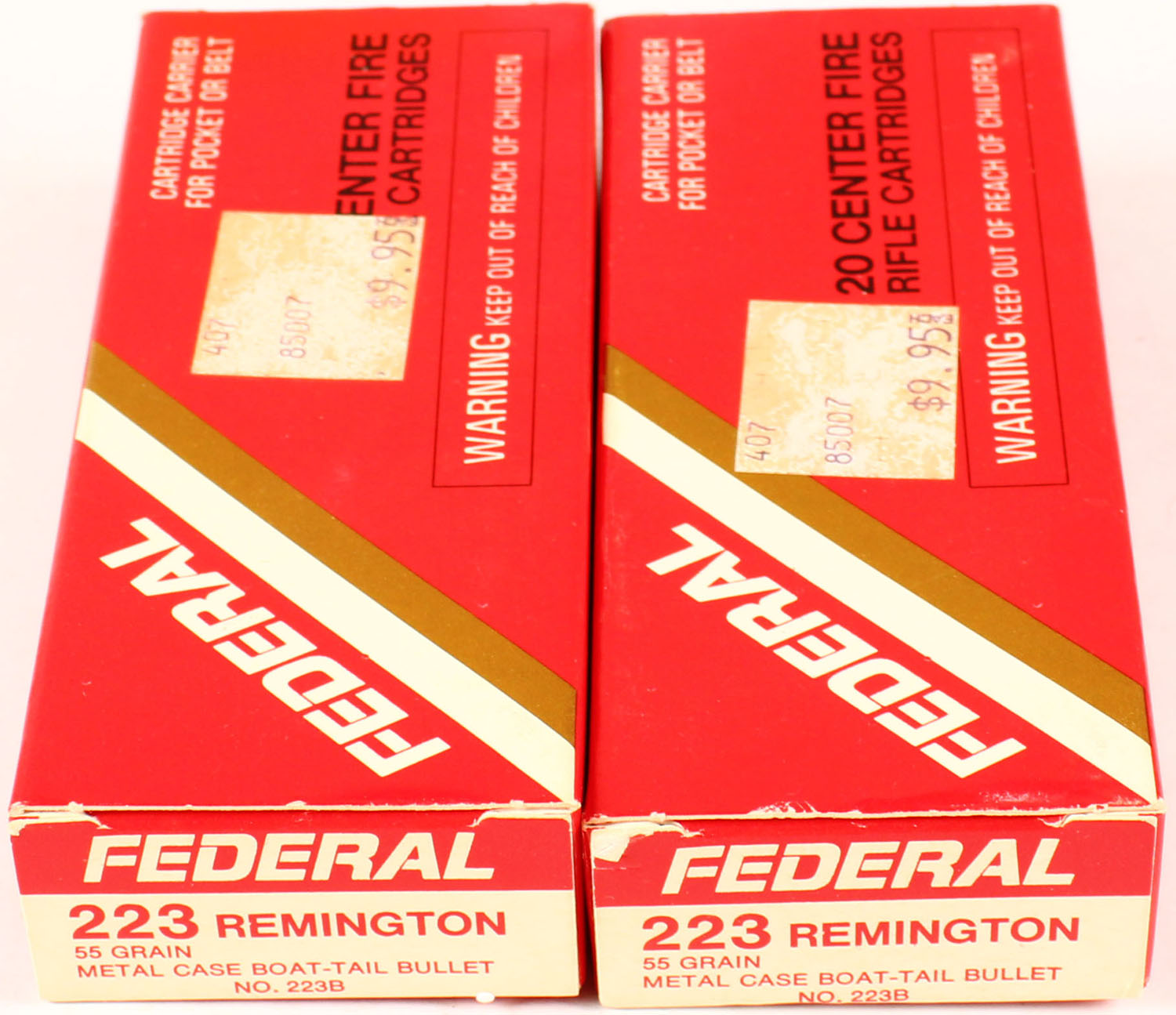 Federal, Lot of (2), 223 Remington, 1pc., Full, 55 Gr. Metal Case Boat-Tail Bullet, No. 223B, box is solid, ammo is Mint. Grade: Excellent + - Value: 20 to 60