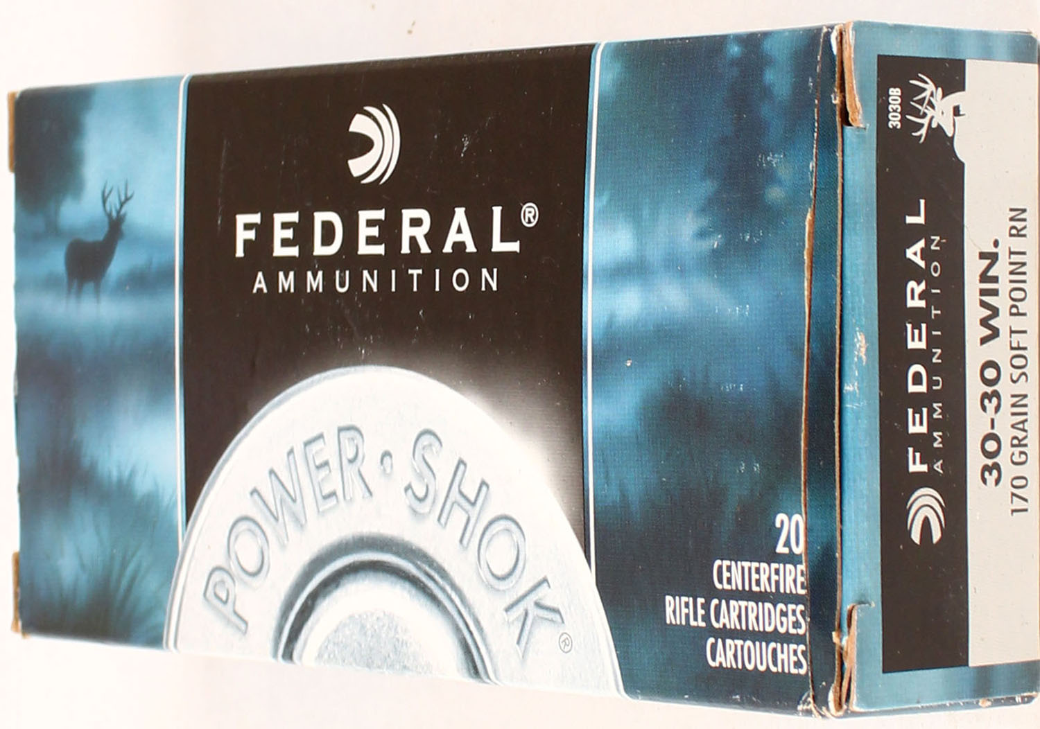 Federal, Power Shok, 30-30 Win, 170 Grain Soft Point RN, Full, 1pc. multi-colored box, box is solid with excellent color, Ammo is very good. Grade: Excellent ++ - Value: 20 to 80