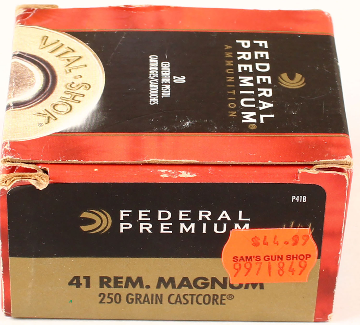 Federal Premium, Vital-Shok, 41 Rem Mag, 250 Grain, Full, 1pc. multi-colored box, box is solid with excellent color, Ammo is excellent. Grade: Excellent ++ - Value: 20 to 80