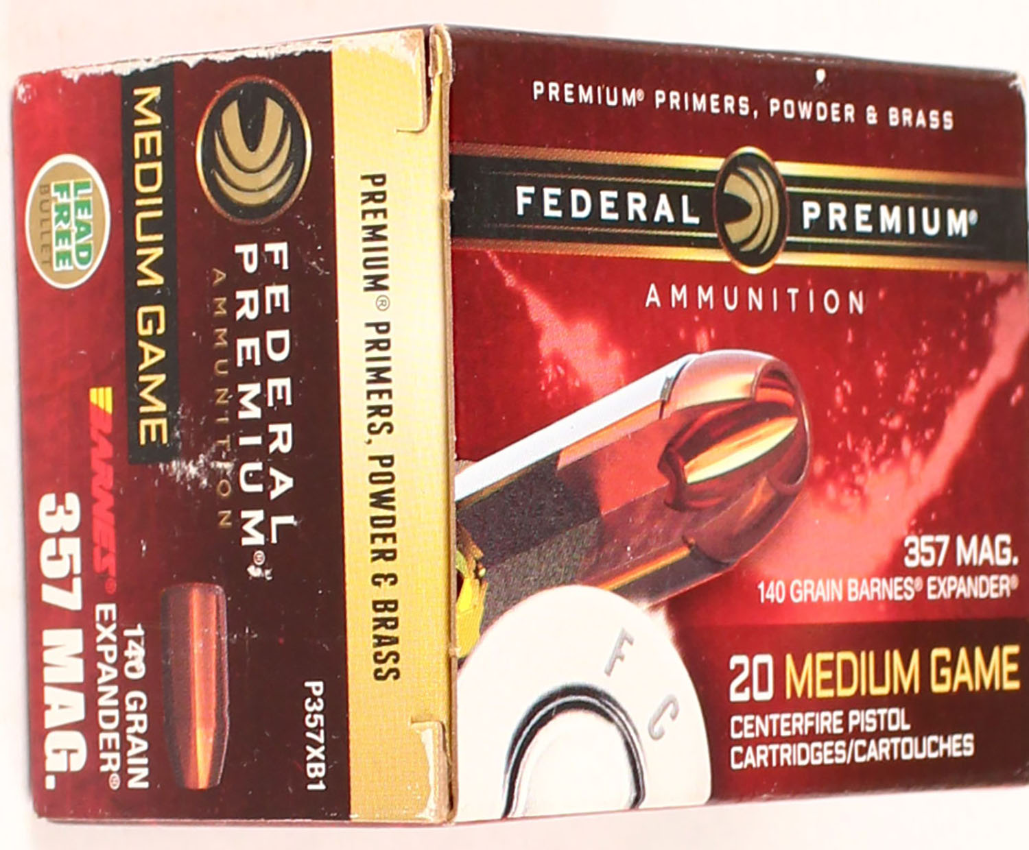 Federal Premium, Medium Game, 357 Mag, 140 Grain Expander, Full, 1pc. multi-colored box, box is solid with excellent color, Ammo is excellent. Grade: Excellent ++ - Value: 20 to 80