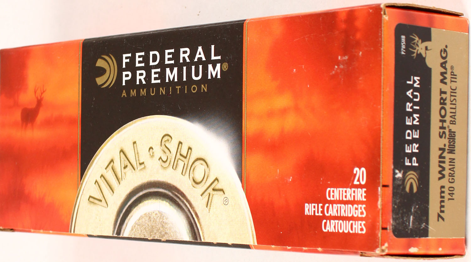 Federal Premium, Vital-Shok, 7mm Win Short Mag, 140 Grain Nosler Ballistic Tip, Full, 1pc. multi-colored box, box is solid with excellent color, Ammo is excellent. Grade: Excellent ++ - Value: 20 to 80
