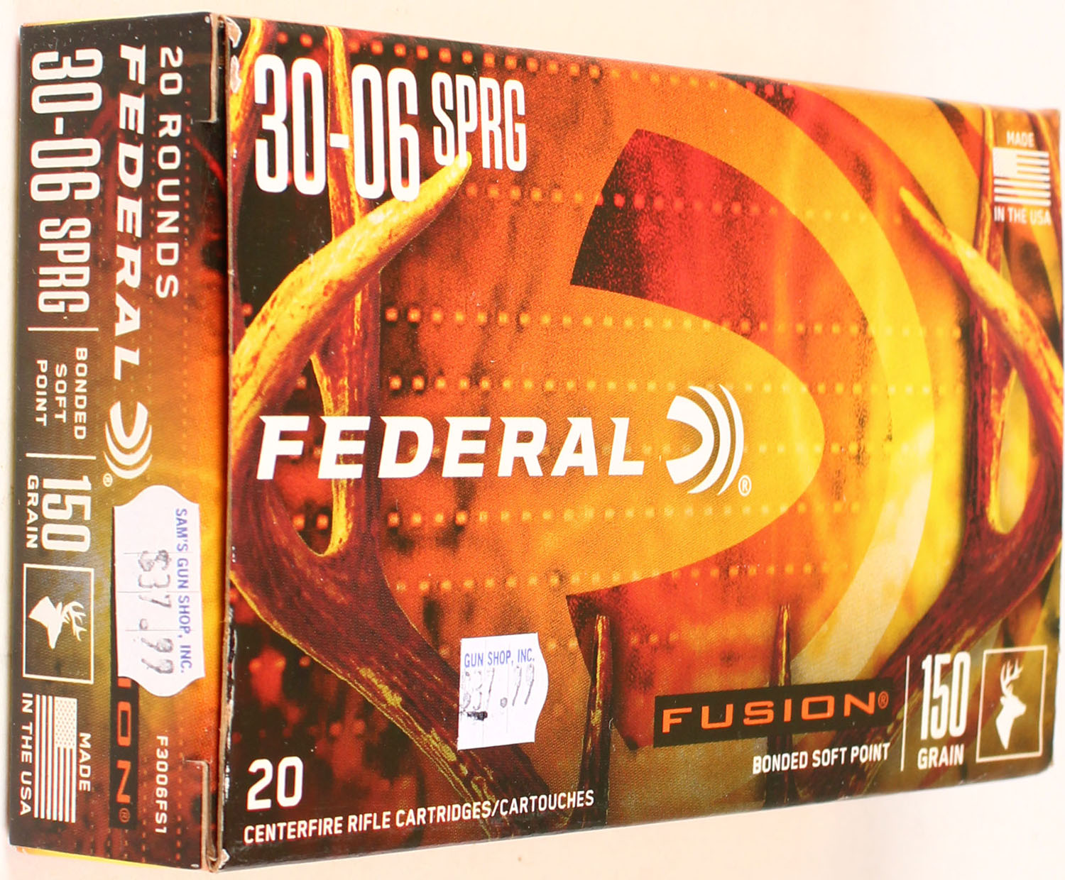 Federal Fusion, 30-06 SPRG, 150 Grain Bonded Soft Point, Full, 1pc. multi-colored box, box is solid with excellent color, Ammo is excellent. Grade: Excellent ++ - Value: 20 to 80