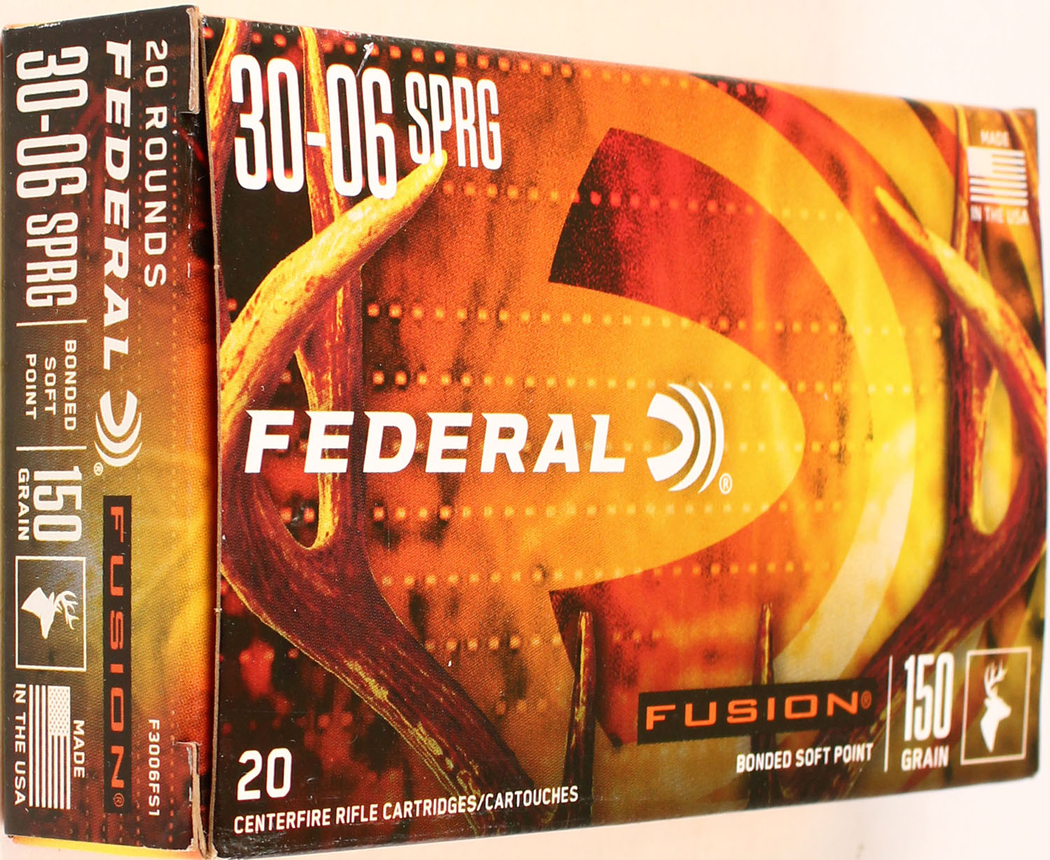 Federal Fusion, 30-06 SPRG, 150 Grain Bonded Soft Point, Full, 1pc. multi-colored box, box is solid with excellent color, Ammo is excellent. Grade: Excellent ++ - Value: 20 to 80