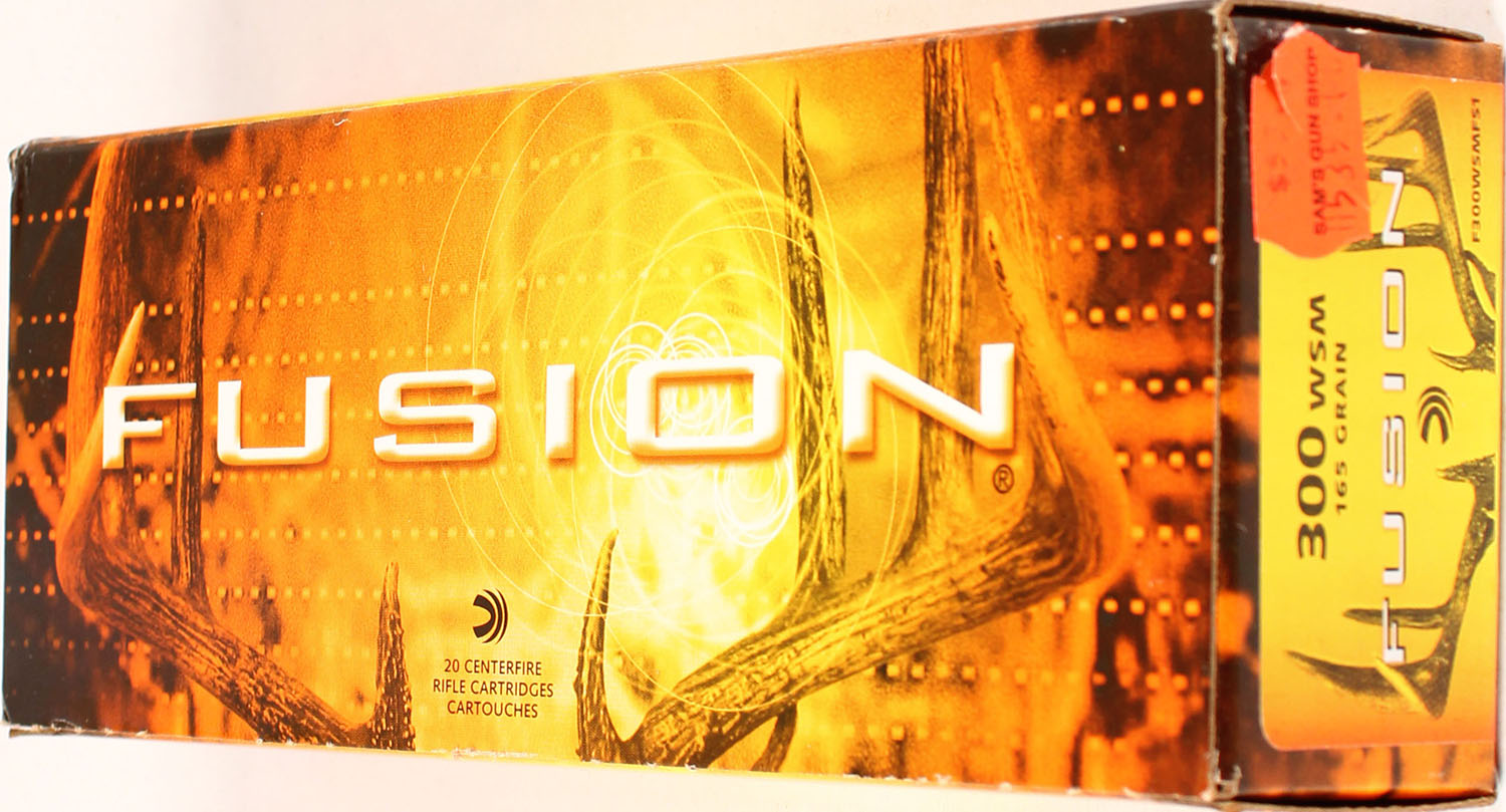 Federal Fusion, 300 WSM, 165 Grain, Full, 1pc. multi-colored box, box is solid with excellent color, Ammo is excellent. Grade: Excellent ++ - Value: 20 to 80
