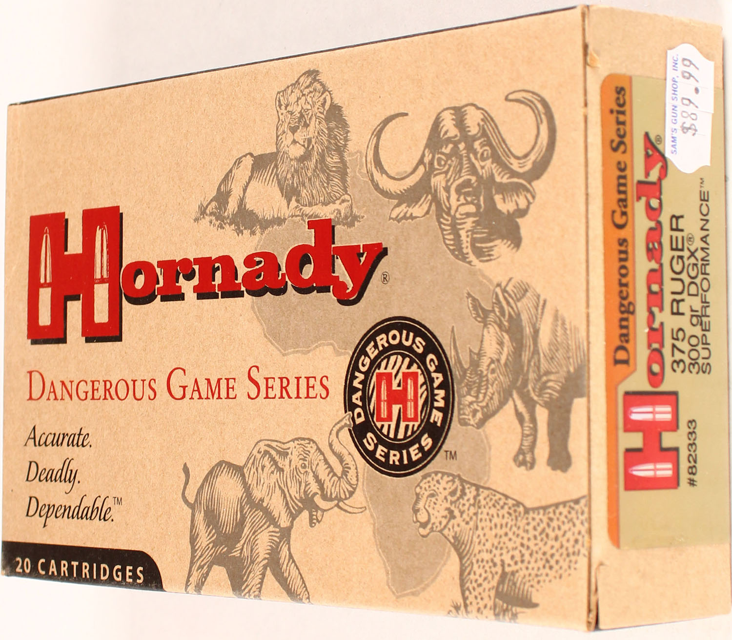 Hornady, 375 Ruger, 300 Grain DGX Superformance, Full, 1pc. multi-colored box, box is solid with excellent color, Ammo is excellent. Grade: Excellent ++ - Value: 20 to 80