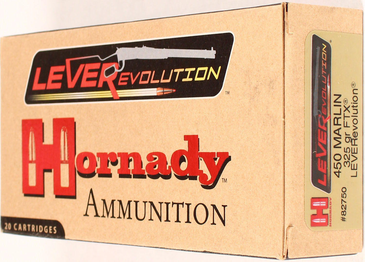 Hornady, LeveRevolution, 450 Marlin, 325 Grain FTX, Full, 1pc. multi-colored box, box is solid with excellent color, Ammo is excellent. Grade: Excellent ++ - Value: 20 to 80