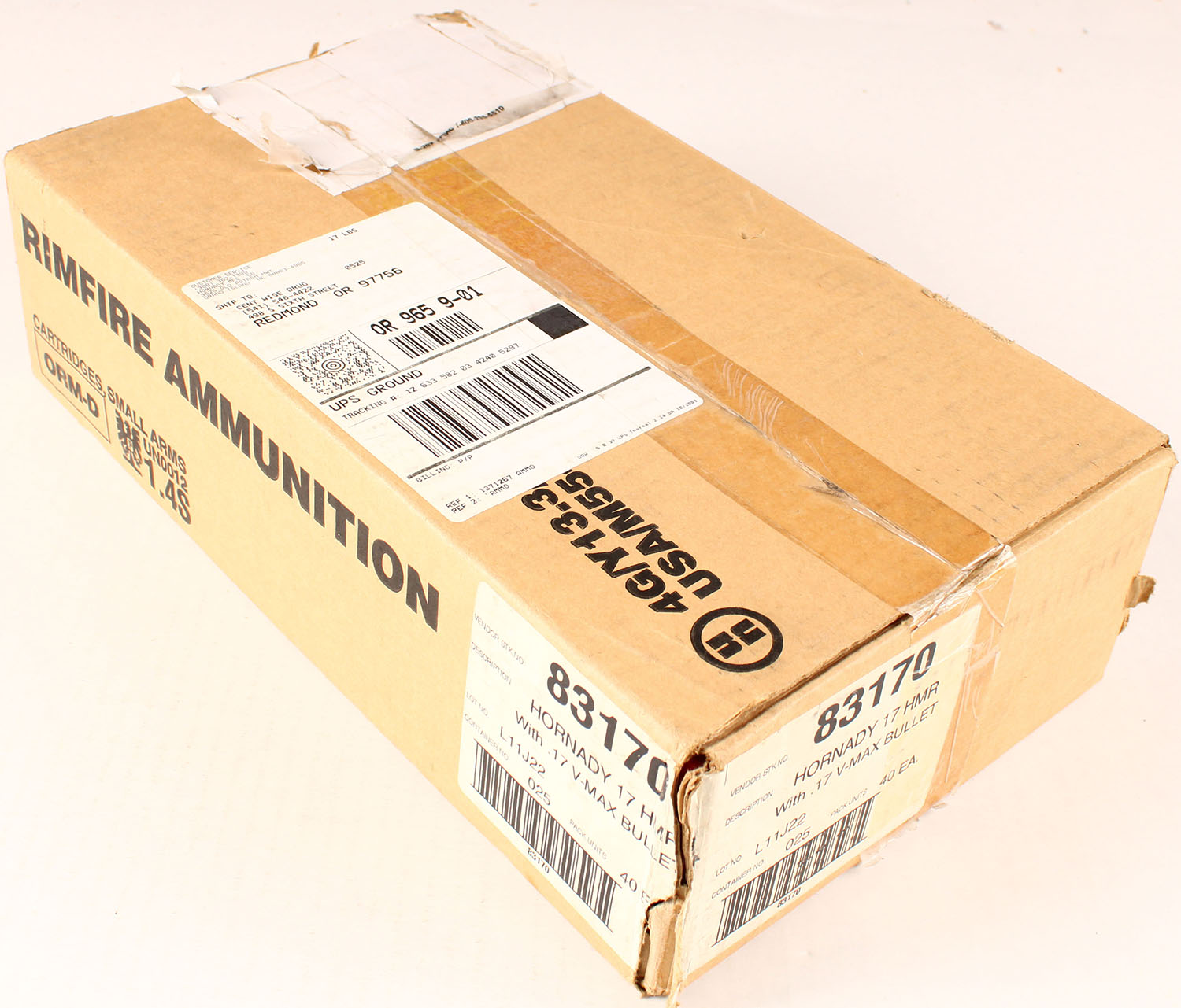 Hornady, 17 HMR, 17 Grain V-Max, FULL & SEALED Case of 2000rds, 1pc. multi-colored box, box is solid with excellent color. Grade: Excellent ++ - Value: 100 to 1000