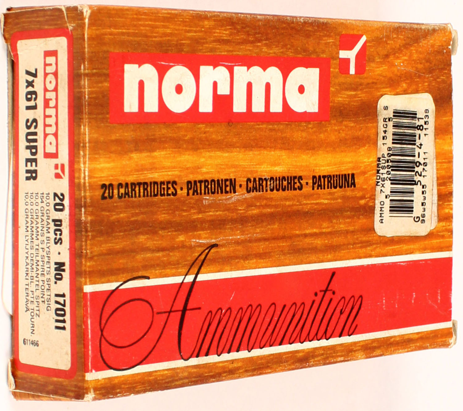 Norma, 7x61 Super, 154 Grain Spire Point, Full, 1pc. multi-colored box, box is solid, with excellent color, Ammo is excellent. Grade: Excellent ++ - Value: 20 to 80