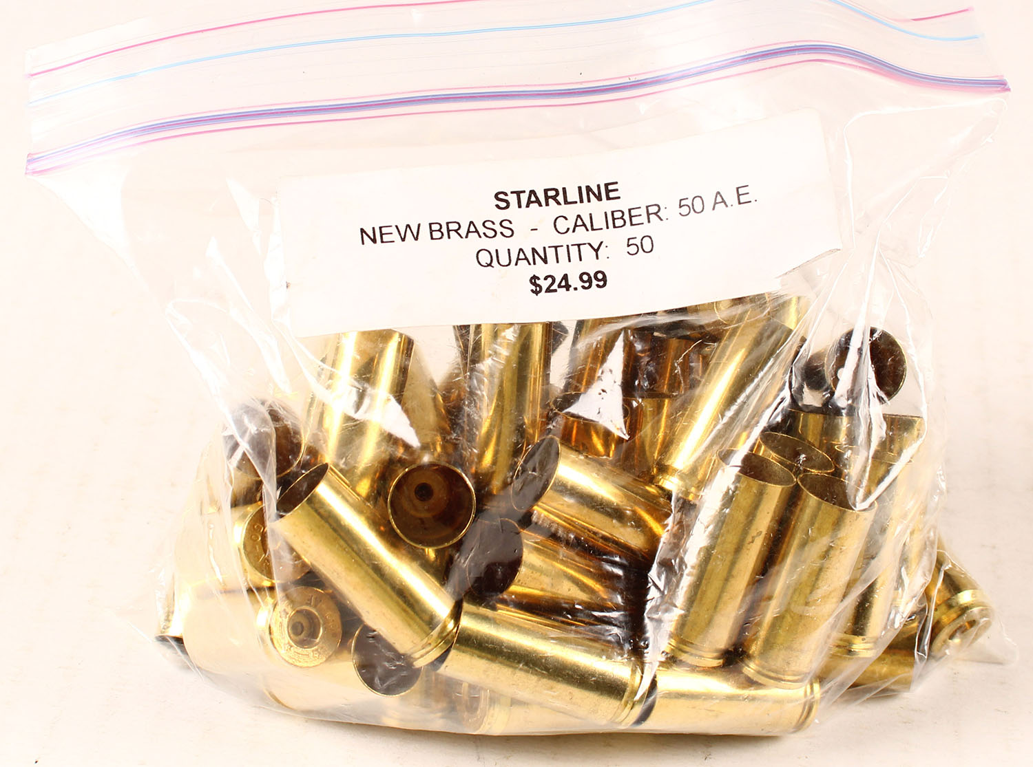 Starline New Brass, 50 A.E, Full bag of 50rds, Ammo is excellent. Grade: Excellent ++ - Value: 20 to 80