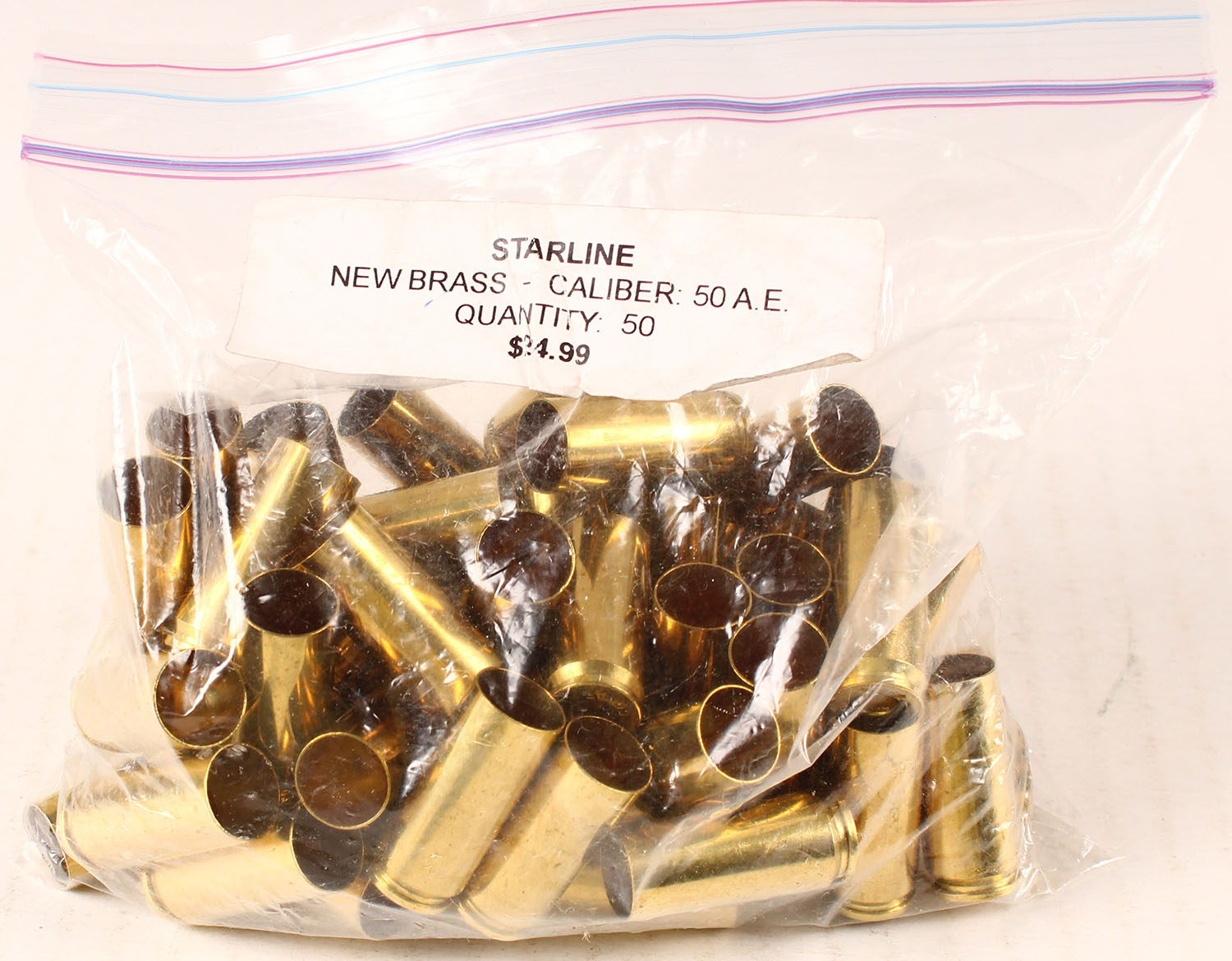 Starline New Brass, 50 A.E, Full bag of 50rds, Ammo is excellent. Grade: Excellent ++ - Value: 20 to 80