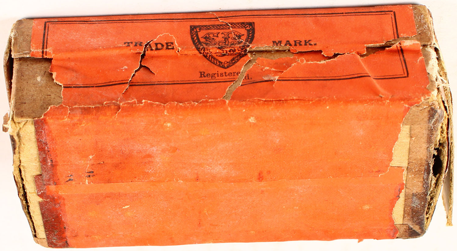 Eley Bros., .476 Government Mark III, Full, 2pc. Buff box with red wraparound label, box is solid with very good color, some age soiling, staining on right end partial seam split to bottom right edge, some edge & corner wear, label is 99% intact, ammo is very good to excellent. Grade: Very Good ++ - Value: 30 to 120
