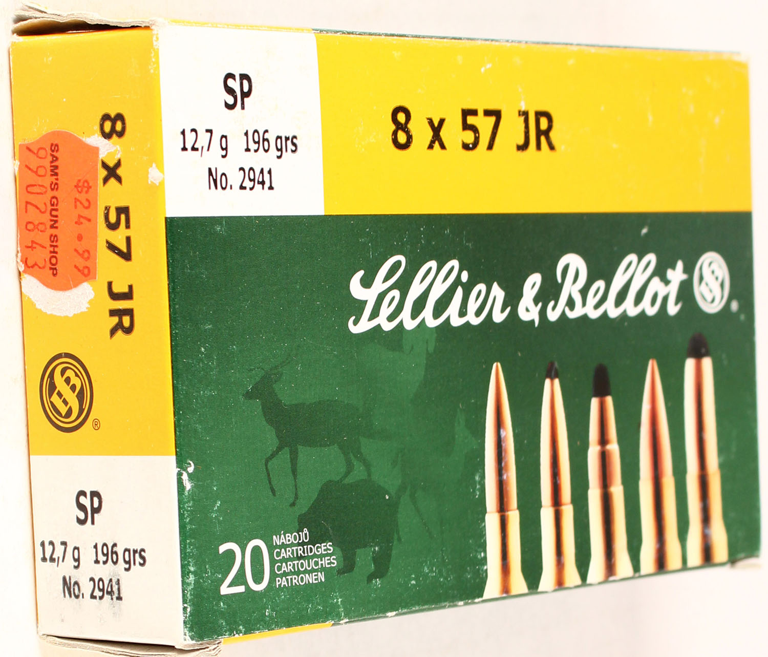 Sellier & Bellot, 8x57 JR, 196 Grain SP, Full, 1pc. Multi-colored box, box is solid, has excellent color, Ammo is excellent. Grade: Excellent - Value: 20 to 80