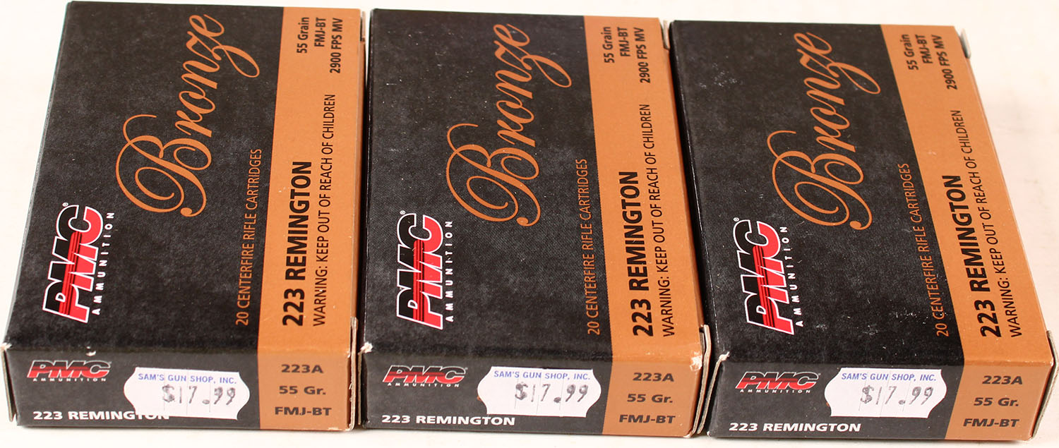 | PMC, Bronze, Lot of (3), 223 Remington, 55 Grain FMJ-BT, Full, 1...