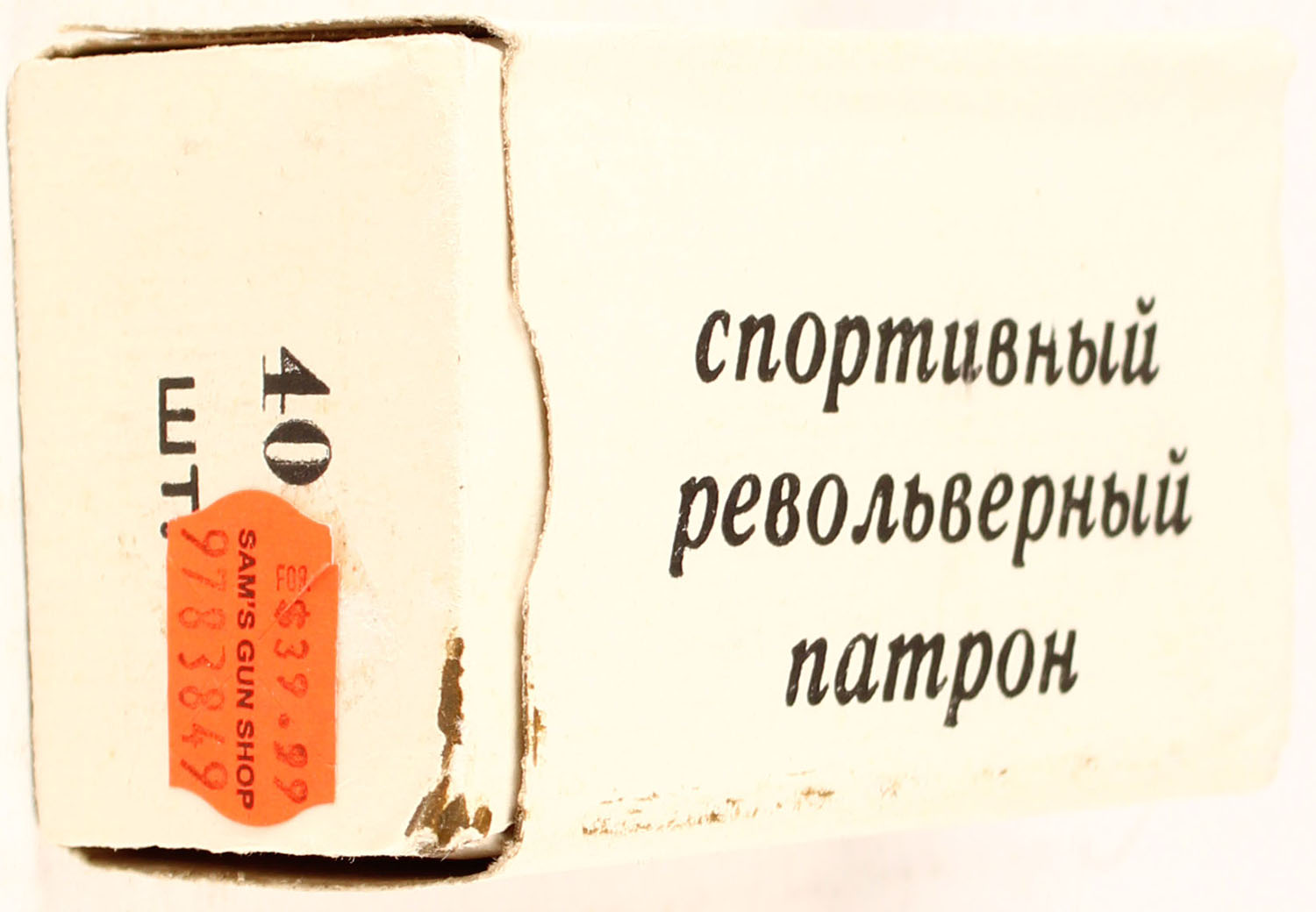 Russian Ammo, 7.62 Nagant, Unknown Grain, Full, 1pc. Black & white box, box is solid, but has light soiling with excellent color, Ammo is excellent. Grade: Excellent - Value: 20 to 80