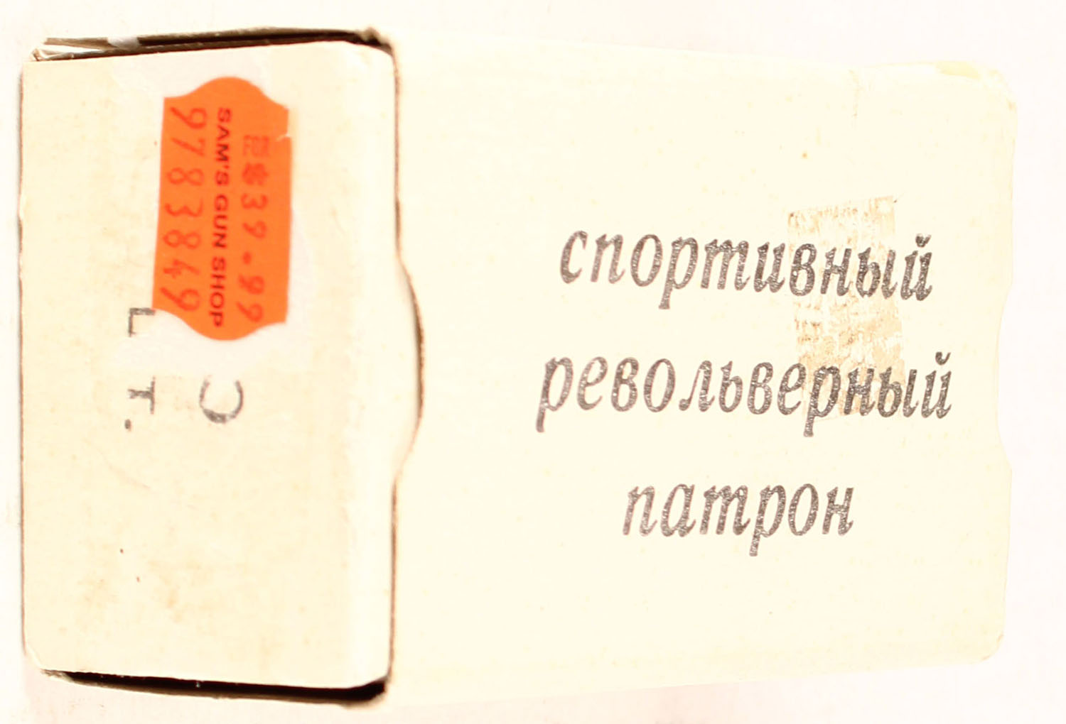 Russian Ammo, 7.62 Nagant, Unknown Grain, Full, 1pc. Black & white box, box is solid, but has light soiling with very nice color, Ammo is excellent. Grade: Excellent - Value: 20 to 80