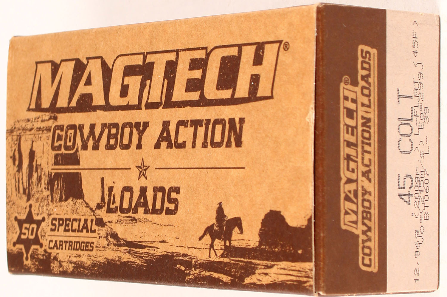 Magtech, Cowboy Action Loads, 45 Colt, 200 Grain L-Flat, Full, 1pc., Multi-colored box, box is solid with great color, Ammo is excellent. Grade: Excellent ++ - Value: 20 to 80