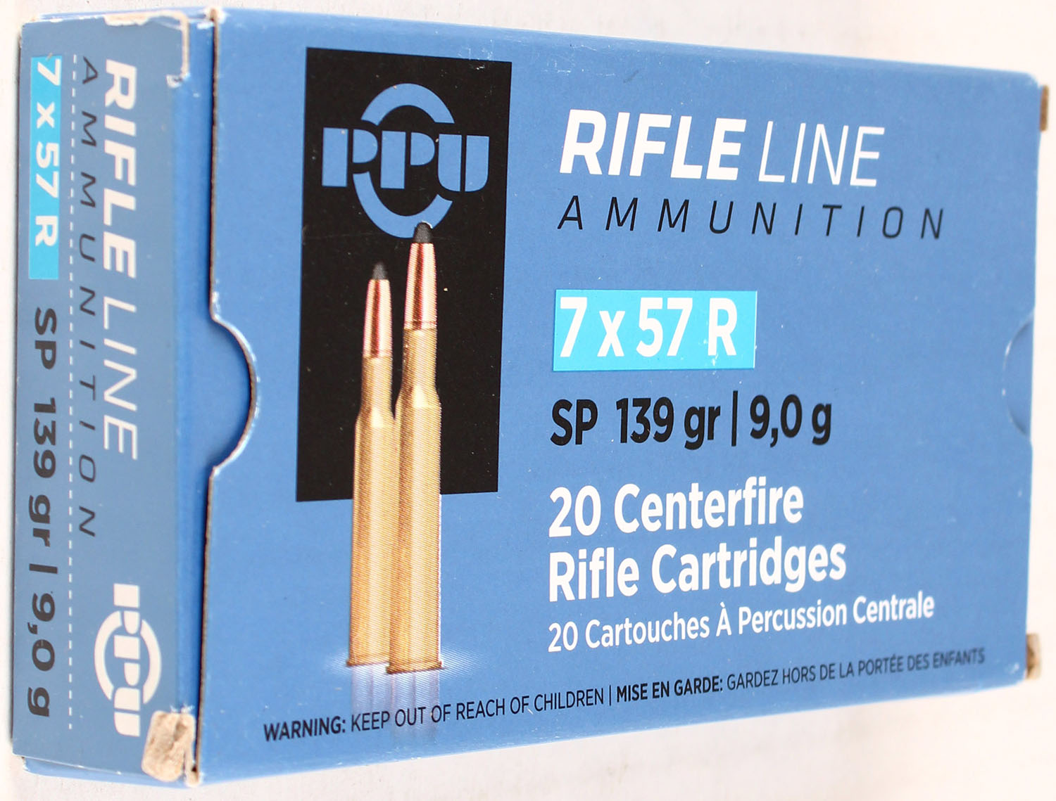 PPU, Rifle Line, 7x57R, 139 Grain SP, Full, 1pc., Multi-colored box, box is solid with great color, Ammo is excellent. Grade: Excellent ++ - Value: 20 to 80