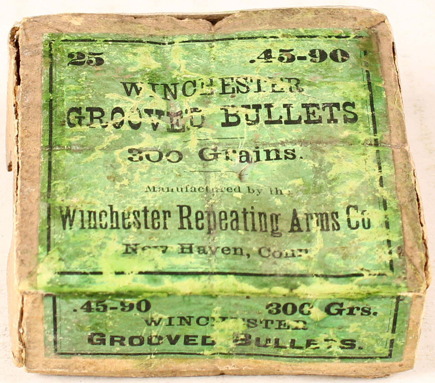 Winchester, 45-90Cal, Grooved Bullets, 300 Gr., 2pc, Full, buff box with green & black label. Grade: Good+ - Value: 20 to 60