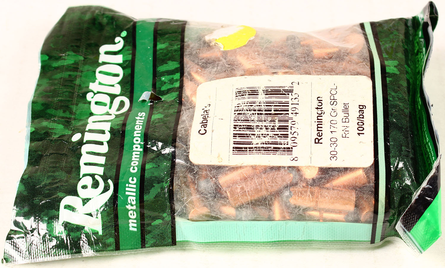 Remington, caliber 30-30, 170 Grain SPCL RN, Full, 1pc., multi-colored bag, bag has one hole solid with very nice colors, Ammo is excellent. Grade: Excellent - Value: 20 to 100