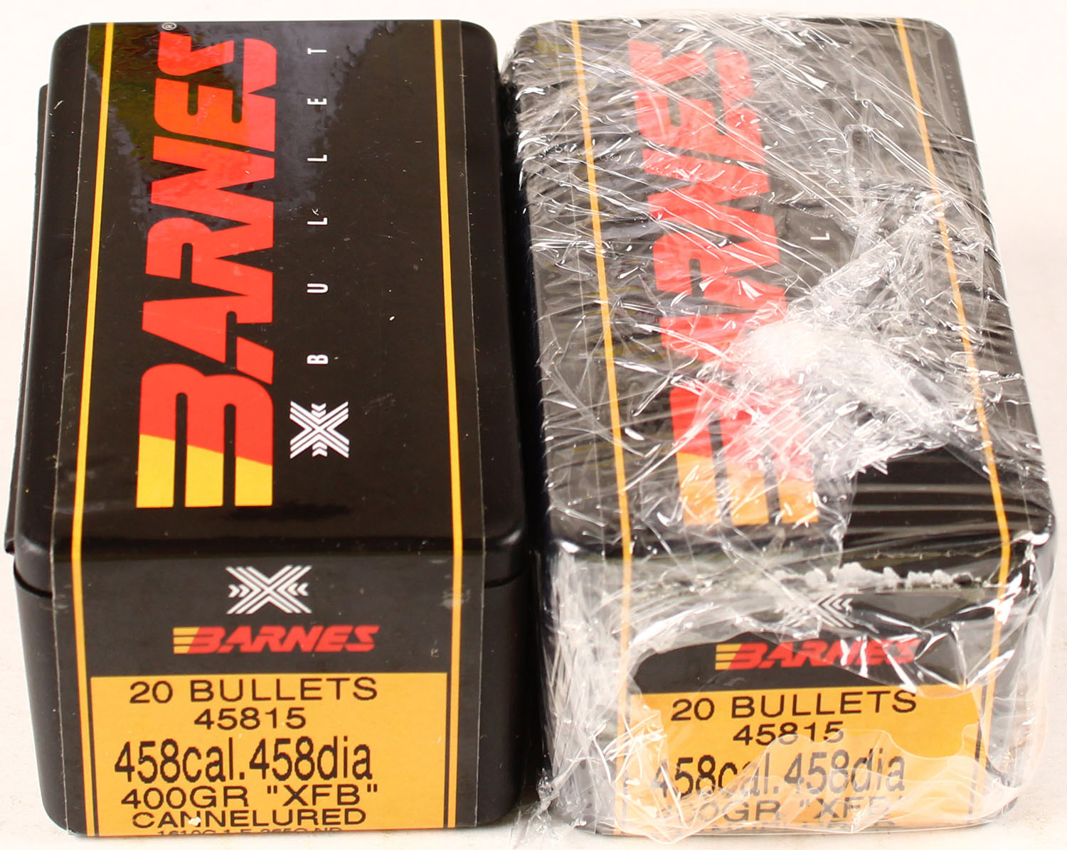 Lot of 2 Barnes, caliber 458, 400 Grain XFB, Full/FULL & SEALED, 1pc., multi-colored box, box is solid with great colors, Ammo is excellent. Grade: Excellent + - Value: 20 to 100