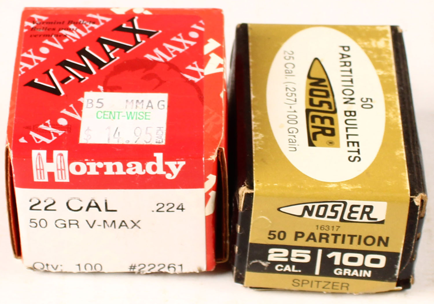 | Mixed Mfg., Lot of (2), caliber 25/22, 100/50 Grain, Partial, 1...