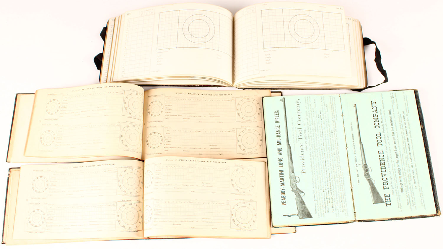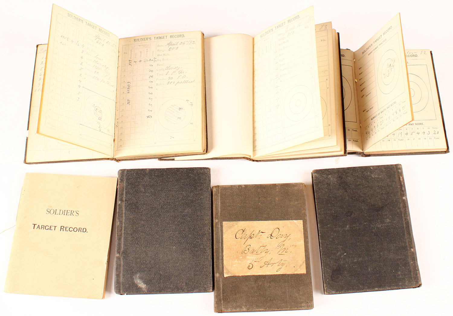 During his military service 1874 he graduated from artillery school & became involved as a military sharp shooter. It was during this period which started his fascination with sharp shooting target rifles & the Creedmoor Shoot. Between 1876 & 89, he became involved with the Creedmoor Shoots in New York, both representing the military & maybe later as a civilian. Sometimes the snippets of records refer to him with rank & others simply by name. The shooters logs, contained in this collection, & this lot, support that he typically competed in ranges from 200 to 600, but also a few longer range shoots. They are a detailed account of dates, times, weather conditions, distances, cartridges & loads, shot placement, along with the guns he used during competitions. Interestingly, several firearms included with the logs are not included in these auctions. The construction of his shipping crate, as included in this lot, indicates that it held many more rifles than are currently in the collection. The crate also has certain adaptations which indicate that there were typically more than five rifles in it. Also, from the combined evidence in the shooters logs and the crate, he had many different rifles over the years. It was during this period of his life that he experiment with rifles, cartridges & likely tinkered with the Electric Rifle being offed in this first lot.