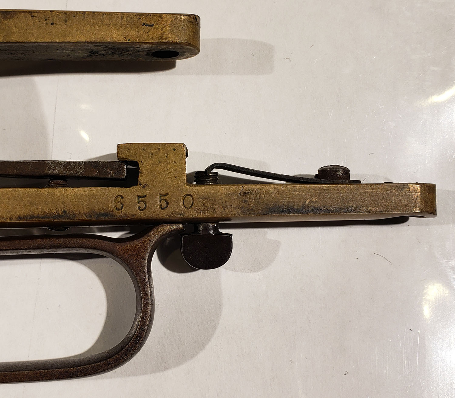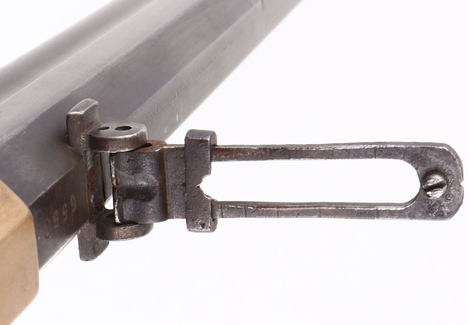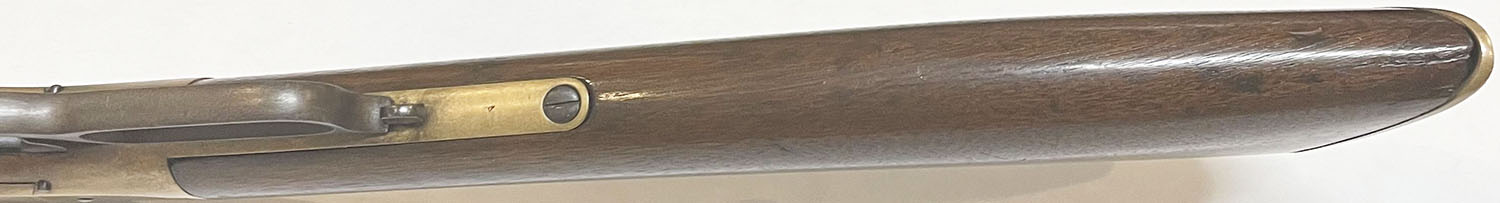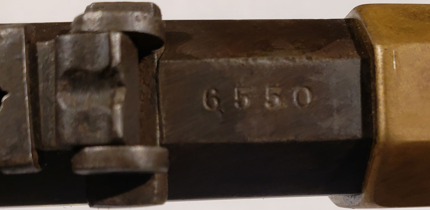 FANTASTIC Henry Repeating Rifle, First Variation, .44 Henry Cal., MFG: 1864, SN: 6550 Lever Action Rifle, Designed by Benjamin Tyler Henry & produced by the New Haven Arms Company. Henry's were used in the Indian Wars & by the Union during the Civil War. They were favored for their greater fire power than standard issue carbines, though at $30 to $40, they were a very expensive option in their day. This mid SN rifle still retains first variation rifle characteristics such as the pronounced ''Henry Drop'' profile on the rear of the receiver & the three flats on the receiver ring (receiver bridge) immediately behind the receiver & barrel joint. On this example, the original wood stock is very good to excellent & solid. The stock has been cleaned & lightly sanded & reoiled, displaying numerous small & minor dings, scratches & contusions consistent with period use. There are a couple of short & tight hairline cracks near the toe. The wood fit is very good with some shrinkage. The metal finish on the 24'' barrel has worn & toned to a thin brown patina, with a mix of added finish & with edge wear & areas of thinning worn to a gun metal gray. There are some small nicks, contusions or abrasions, & surface freckling, but no real pitting or rust. The barrel has a professionally filled 2nd rear dovetail approximately 6'' from the receiver ring. The brass frame & buttplate have both likely been cleaned in the past, but have developed nice aged color. Buttplate has a hinged trapdoor were an original 4pc hickory cleaning rod would be originally stored, although not currently present. Bore is fair, with areas of pitting amongst strong rifling. The rifle has a nickel silver front sight blade & third style folding leaf rear sight with 900 yard notch at the top of the leaf. Present are the typical sling attachments on the left side of the stock & barrel, & the faint remains of the ''Henry Bump'' can be seen below the sling provision on the stock. The top barrel flat is roll-stamped with the slightly larger style legend: ''HENRY'S PATENT. OCT. 16. 1860 / MANUFACT'D BY THE NEWHAVEN ARMS CO. NEWHAVEN. CT.'' in two lines forward of the rear sight. The serial number is stamped on the top of the barrel between the rear sight & the receiver. Matching SN's are stamped on the inside of the buttplate & on the left side of the lower tang beneath the wood. The hammer, lever & trigger are case-hardened, although the case-color has mostly worn away & developed a brown patina. There is the remains of a ''W'' proof stamping on the lower tang, which has been speculated was the inspection stamping of Oliver Winchester. The hammer has borderless knurling on the spur. All screws fit & line up correctly, are mostly unbuggered & appear original. While it is reported that as many as 14,000 Henry rifles were produced. Production of the Winchester 1866 rifle was SN intermixed starting around 12,000, so some speculate fewer that 14,000 were actually produced. With such a low production total & their heavy use during the Civil War, Indian wars & Western frontier movement, any Henry rifles is always highly collectable, but especially when found with all SN matching parts & in relatively unmolested condition such as this rifle presents. Antique, No FFL Req. - Value: 20000 to 35000