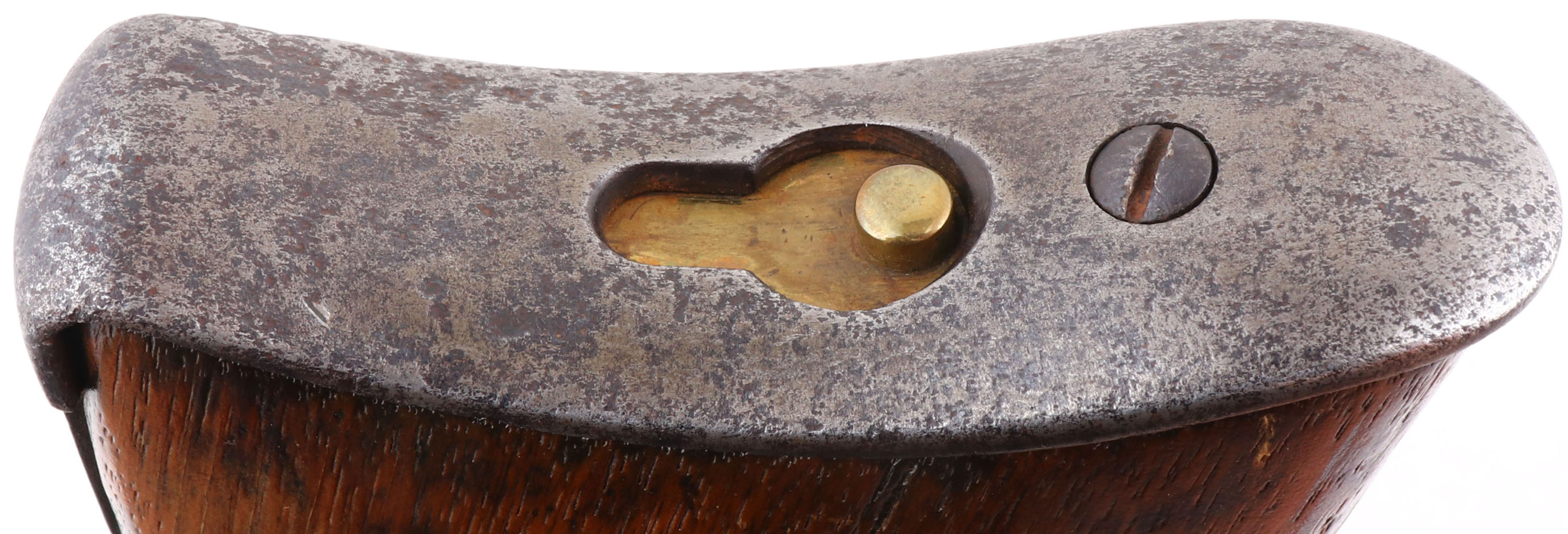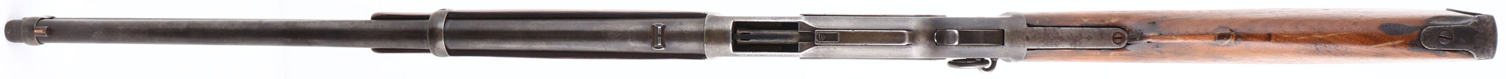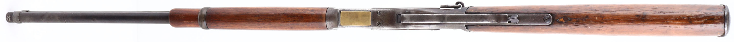 Winchester, Model 1873 Saddle Ring Carbine, Third model, .44 WCF Cal., MFG: 1883, SN: 144060A, Lever Action Rifle, 20'' Round barrel does not have an address or a Winchester roll stamp, Full mag. The original wood stocks are fair to good & solid. The stock has been fully cracked from the buttend to the upper comb & has been glue repaired. The upper comb has a 2 1/2'' inlay repair & there is a large gouge on the right side of stock by the upper tang of the buttplate. The stock also has a filled sling hole in the belly of the stock behind the lower tang. The stock has been heavily sanded & both stock & forearm carry additional finish. The forearm band is missing the screw. The metal blue has worn to a mostly gun metal gray, with 25% of a blue toning brown finish remaining on barrel, 50% on mag. The receiver is gun metal gray, with some remains of blue & a thin brown patina. There is a line band around the mag 3 1/2'' from muzzle end & a few minor dents in mag. Bore is very good, but with some roughness. Metal carbine buttplate, with sliding trapdoor. Fixed rear & small blade on box carbine front sights. Missing dust cover. Original saddle ring, Smooth tight action. Model 1873 SRC are always fairly rare. Antique, No FFL Req. - Value: 2000 to 4000