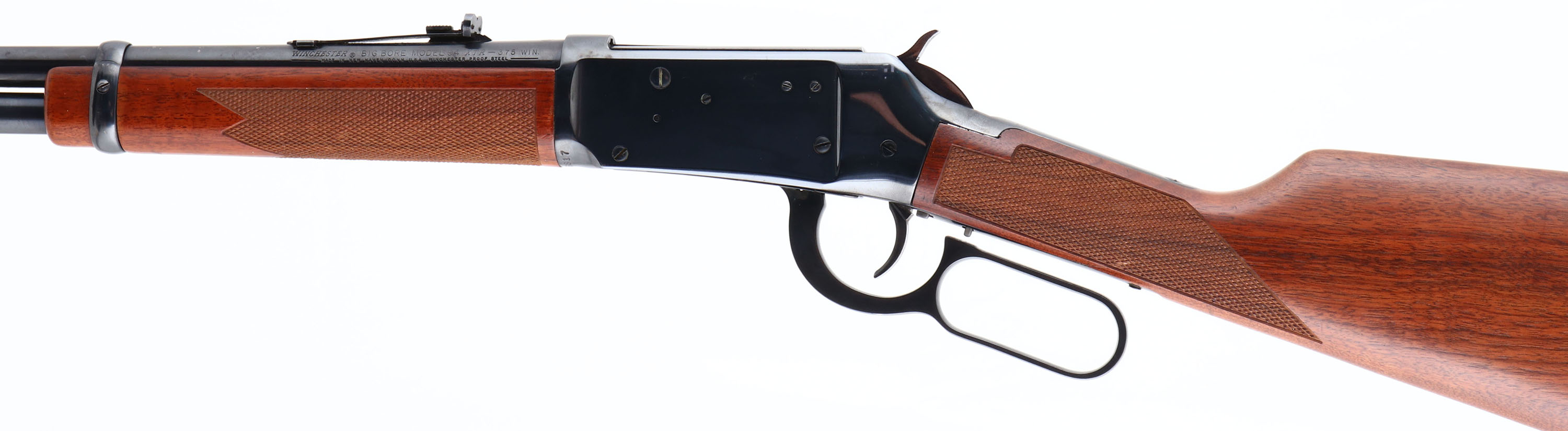 Winchester Model 94 XTR Big Bore Carbine, CAL: 375 WIN, MFG: 1979-81, SN: BB006817, Lever Action Carbine, 20'' barrel. The original checkered, straight grip wood stocks are excellent, displaying virtually no defects to the original finish. The metal blue finish rates 99% on the barrel, tube & receiver, with a few tiny spot of rust pitting on the receiver. Bore is excellent. Factory sights. Buttstock carries a Winchester solid red rubber recoil pad. An overall excellent & all original rifle. FFL Req. - Value: 600 to 1200