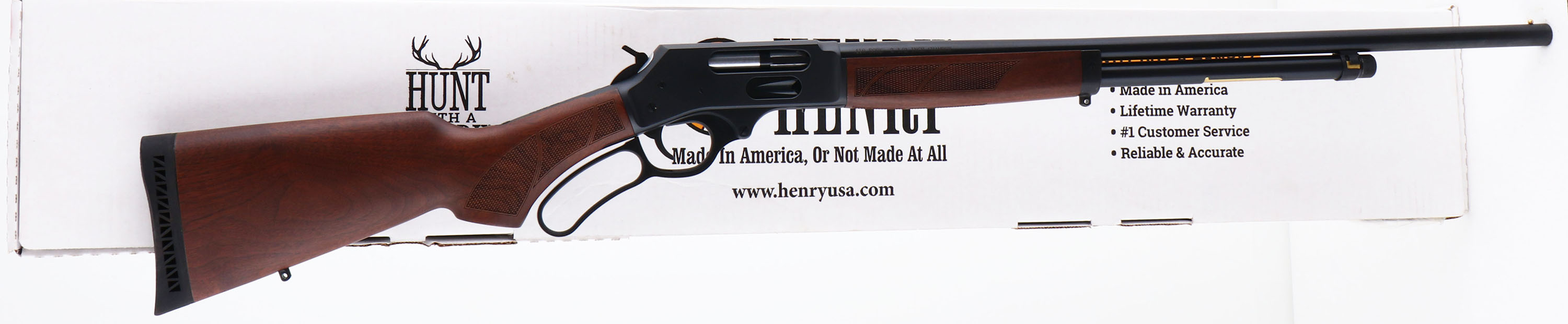 BOXED, Henry Repeating Arms, Side-Gate Shotgun (Model 018G-410)., CAL: 410, MFG: Modern, SN: FTL02440G, Lever Action Shotgun, 24'' barrel. The original straight grip wood stocks are excellent, with factory finish & virtually no defects. The metal blue finish rates 99% overall. Bore is excellent. Barrel carries a single front bead. Buttstock carries a Henry ventilated black rubber recoil pad. Comes in original matching box, with packaging, paperwork & tool. FFL Req. - Value: 700 to 1200